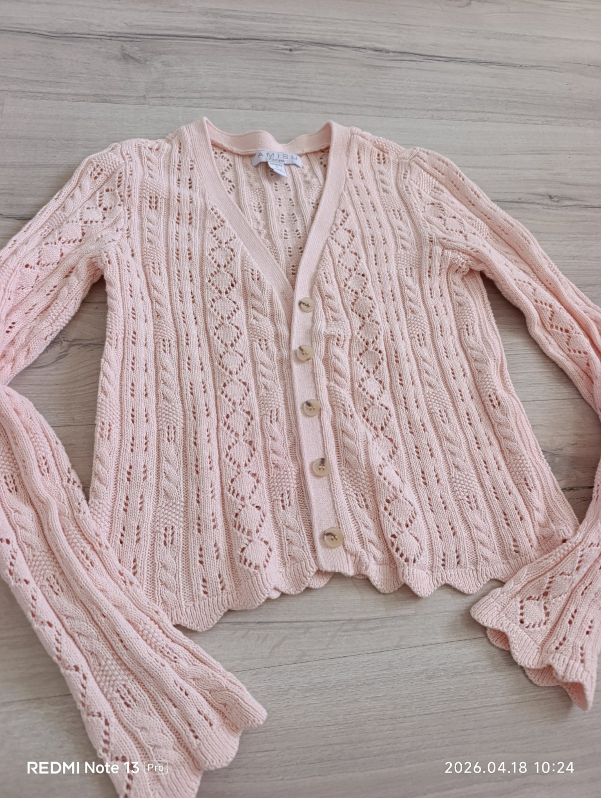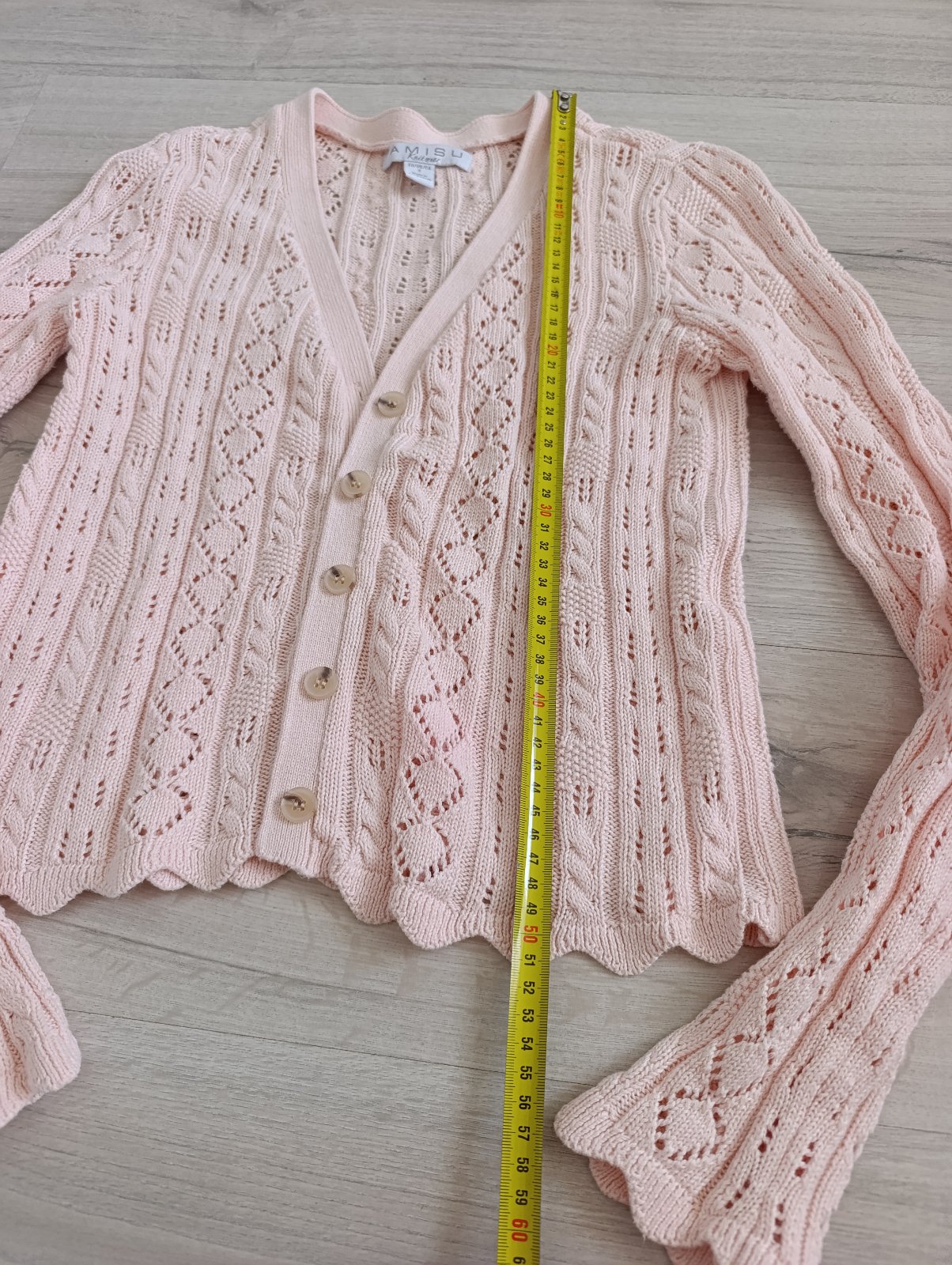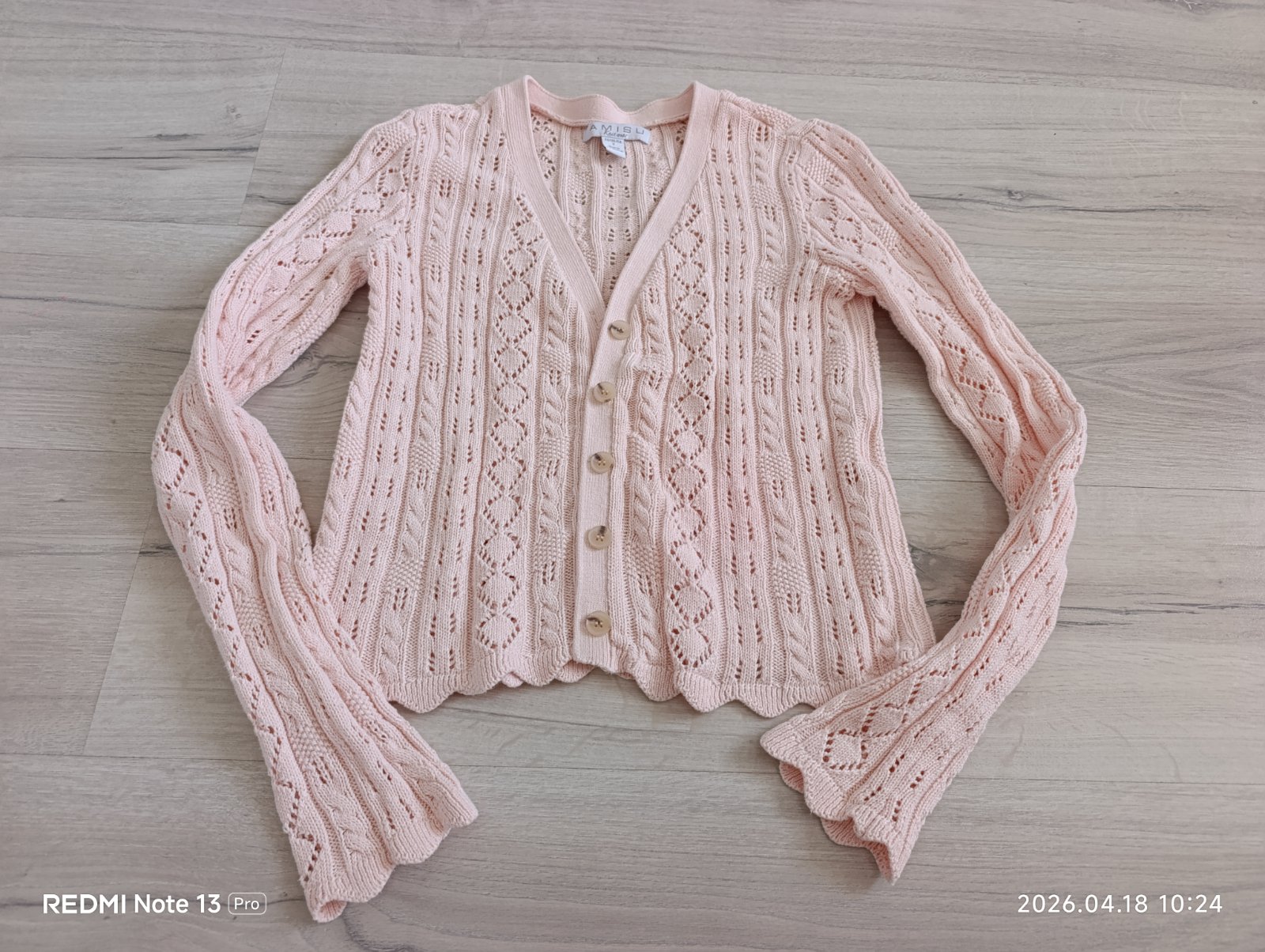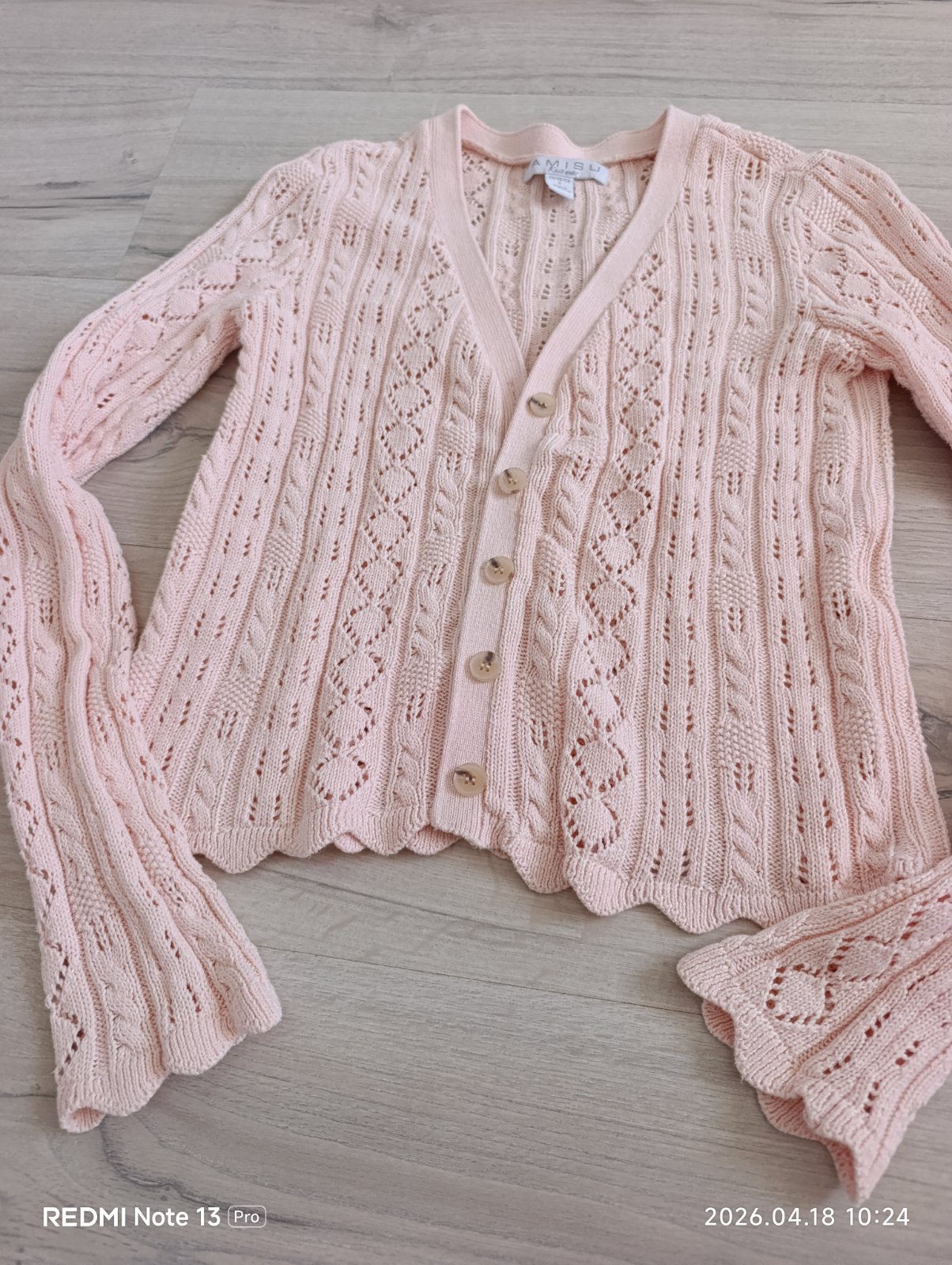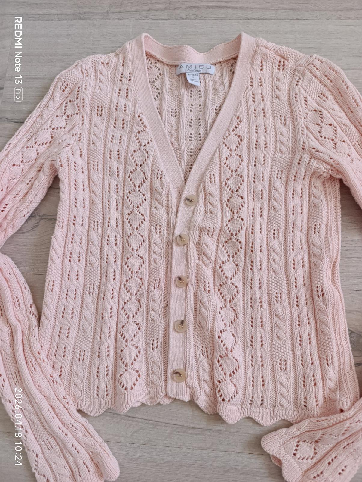 Ažúrkový sveter krásnej farby, kúpený tu, ale nesadol. Pri výmene 5€