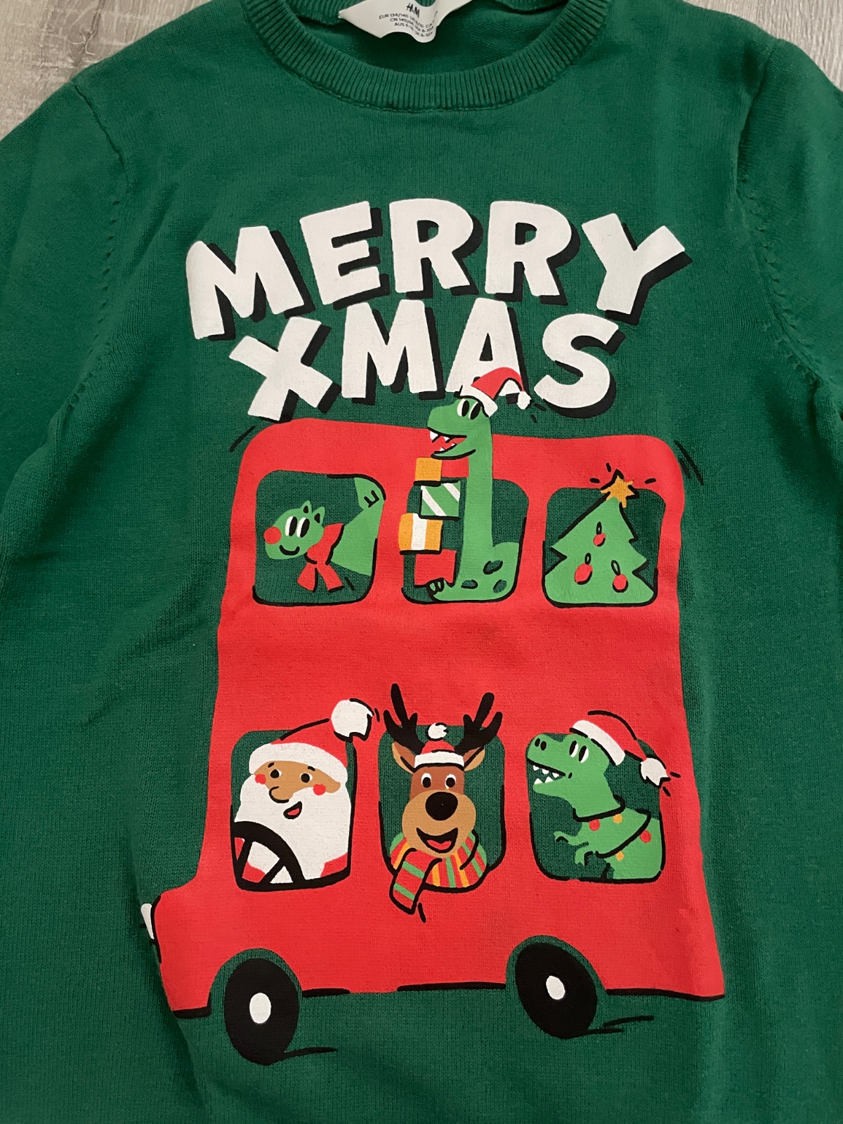 Predam malo noseny vianočný sveter znacky H&M v top stave. Velkost uvedena 134/140. Celkova dlzka je 53 cm, sirka 37 cm. Dlzka rukava od krku je 60 cm, od ramena 51 cm.