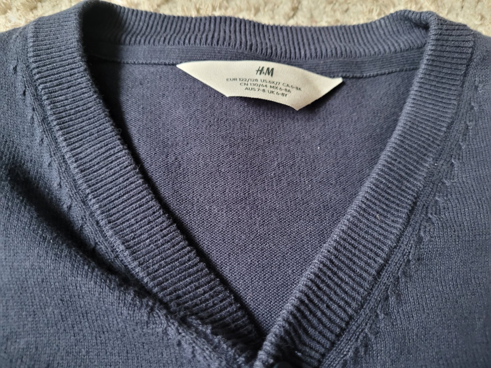 Predam 3 rovnaké svetre, všetky velkost 122/128. Sú peknej tmavomodrej farby, na fotkách sa mi nedá zachytiť tak farba. Pekný stav. Nosené príležitostne na fotenie, vystupovanie...