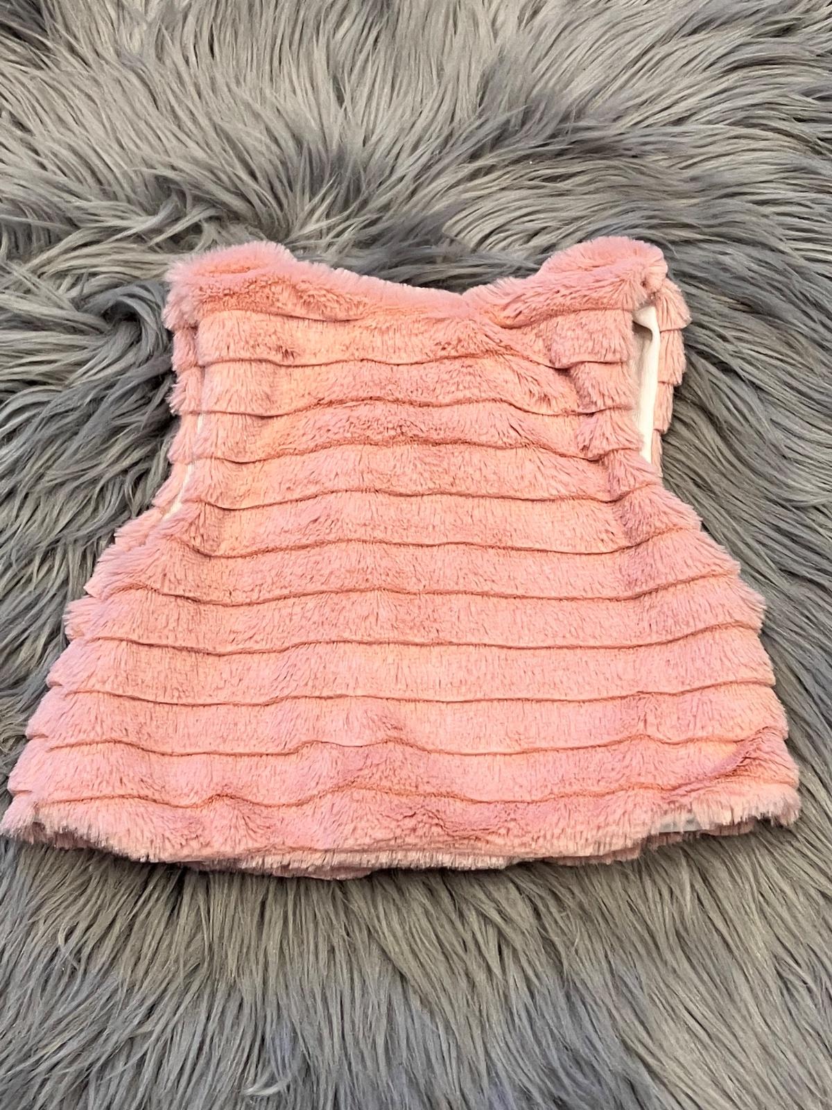 Dievčenská huňatá vesta, zapínanie na jeden gombík, elastická.