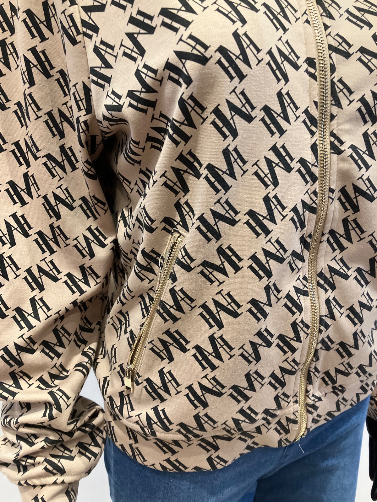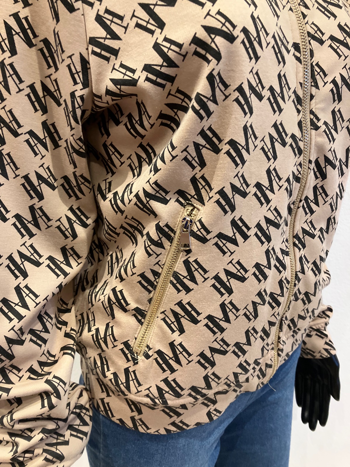 Dámska mikina, zapínanie na zips, dve bočné vrecká na zips, elastická, tenšia, materiál 100%polyester, farba: hnedo-čierna.