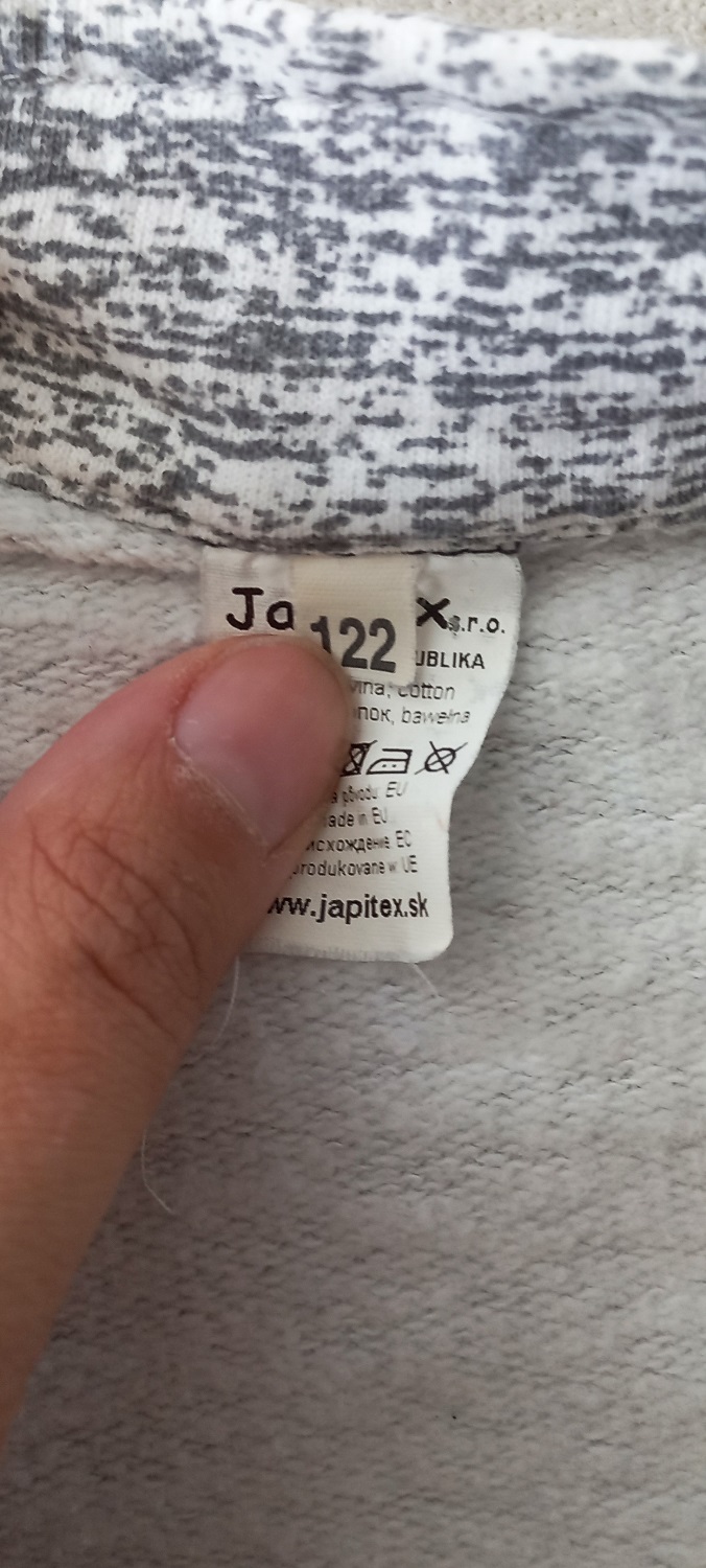 Chlapčenská mikina, značka Japitex, veľkosť sedí na 116/122 (písaná 122). Rozmery sú na fotkách, 100% bavlna. Vyrobené na Slovensku. Nosená, vidieť nosenie, nepoškodená. Bez fľakov a dier. Máme viacero detských vecí, môžete si zostaviť vlastný balíček. Pri kúpe viac vecí zľava.