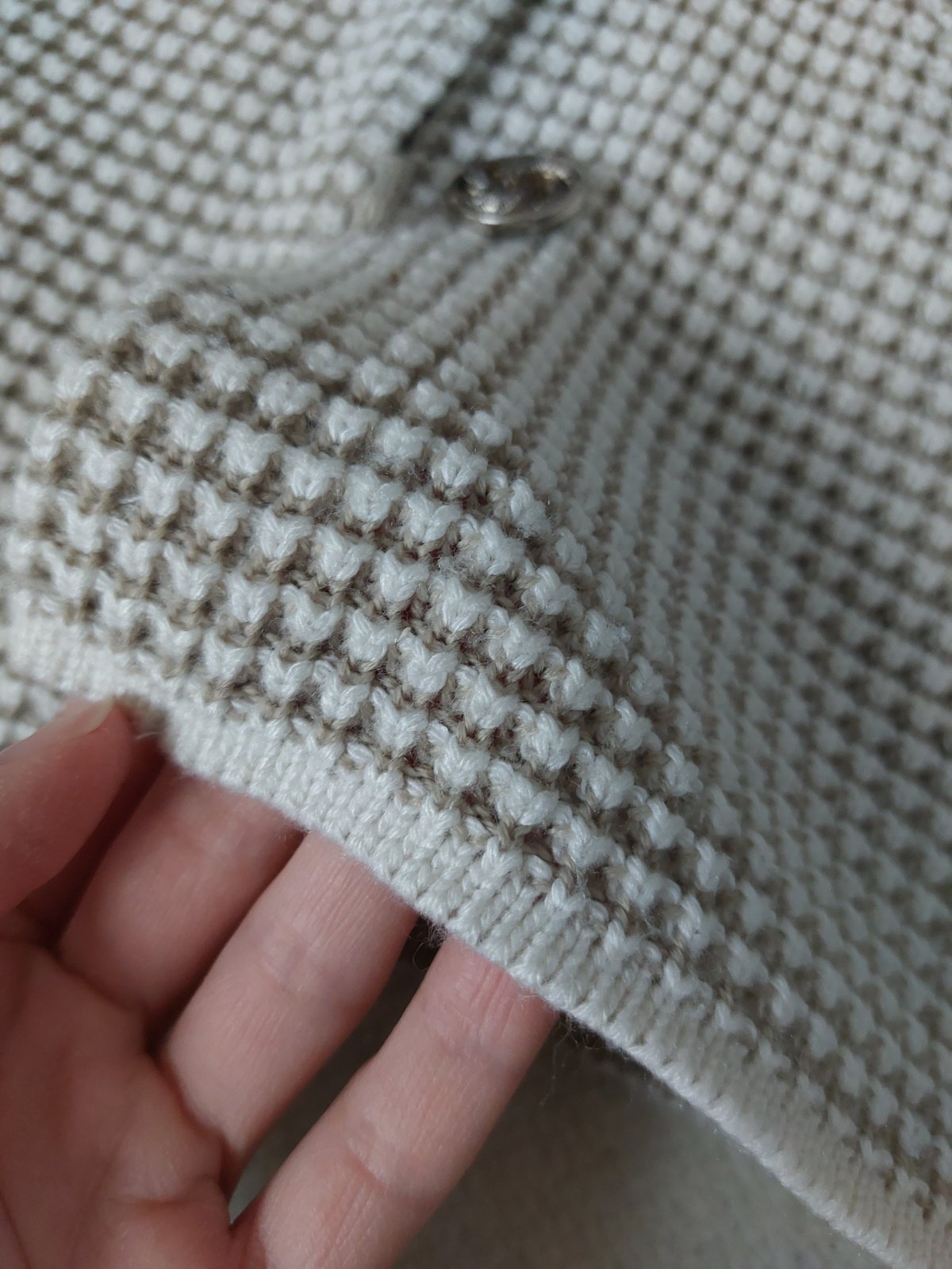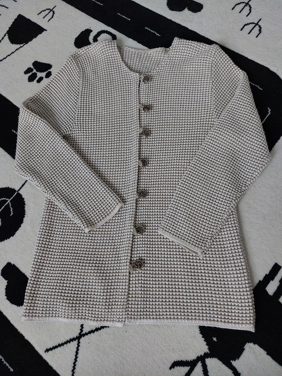 Pekný noseny svetrik so zaujímavým zapinanim. Sirka popod pazuchy cca 43 cm.