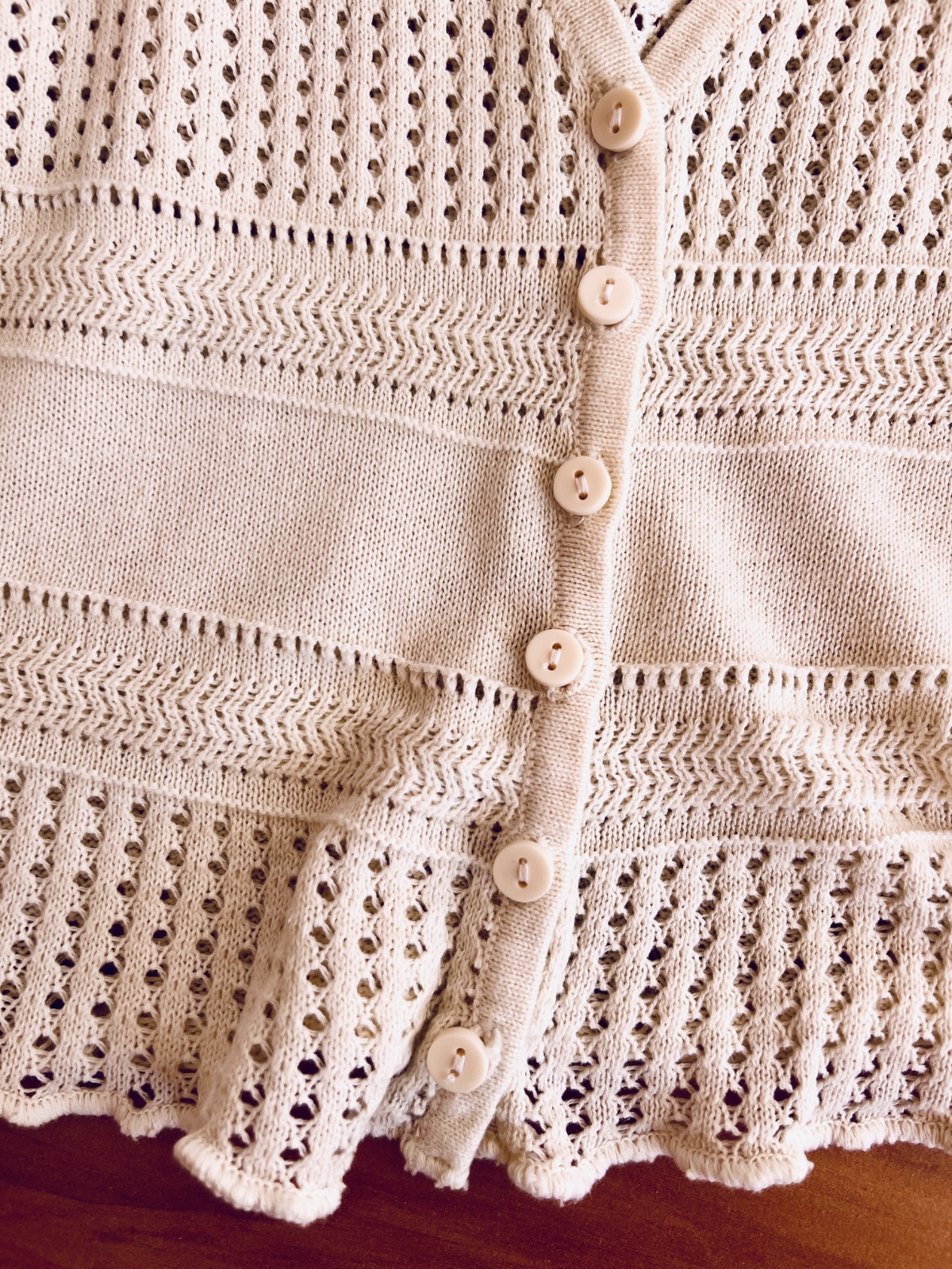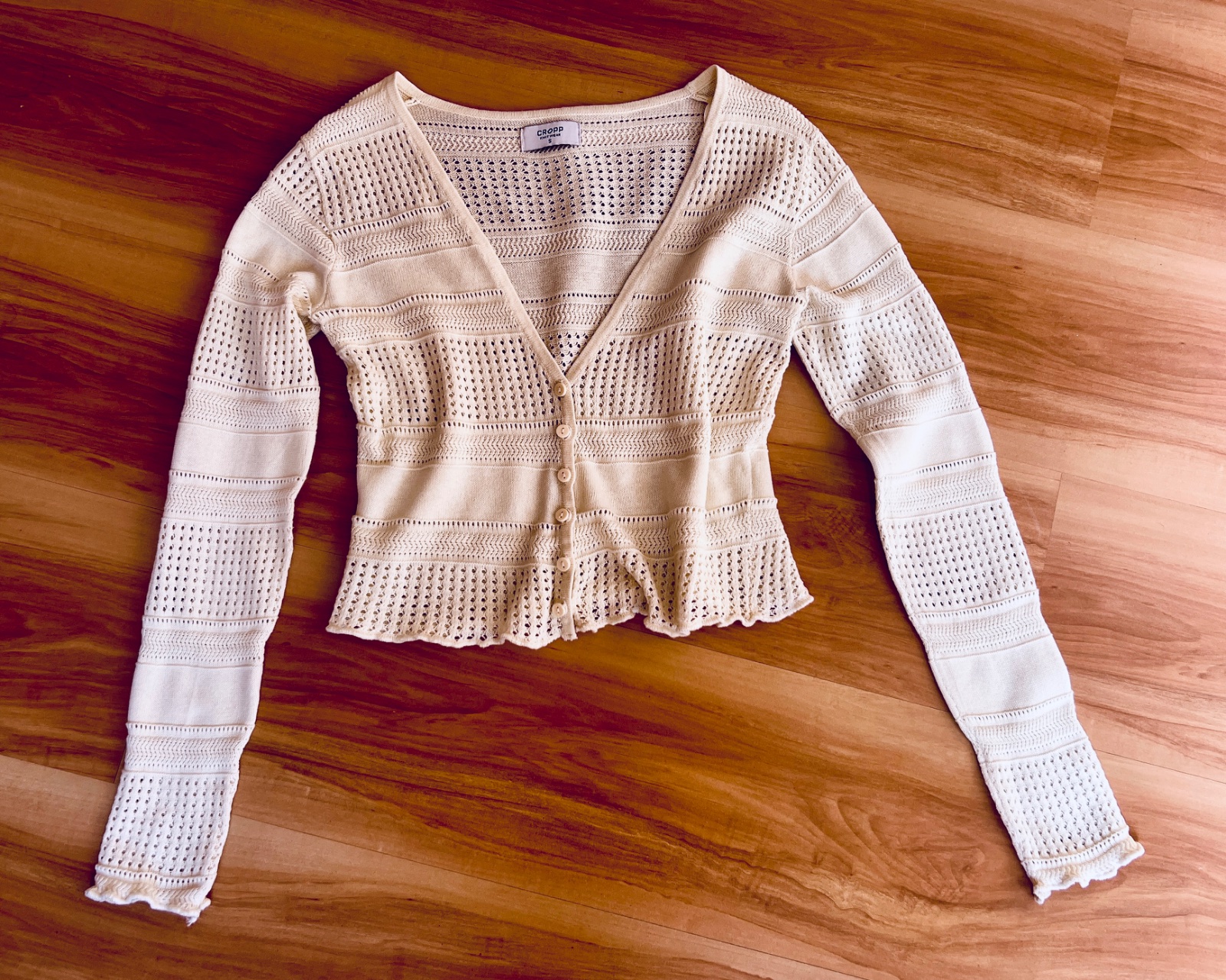 Jemný béžový svetrík značky Cropp. Zapína sa na gombíky. Nebol nosený, len vyskúšaný. Veľkosť S.