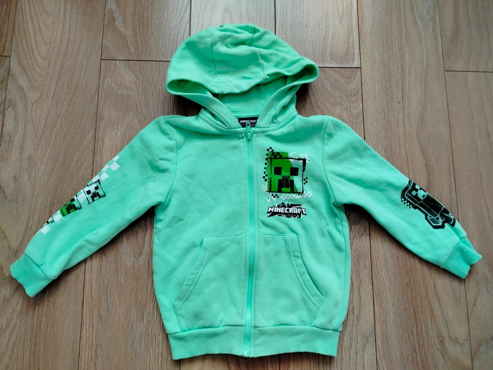 Predám veľmi peknú chlapčenskú mikinu na zips s kapucňou so vzorom Minecraft (Creeper a pixel art motívy na rukávoch aj na hrudi). Farba je svieža svetlozelená/mintová. Mikina je minimálne používaná, takmer ako nová – bez žmolkov, bez vyblednutia, stále mäkká a v výbornom stave.