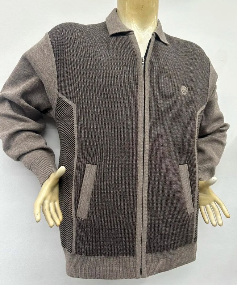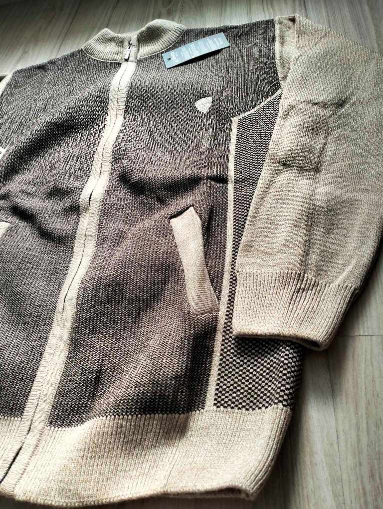 Elegantný béžovo hnedý sveter na zips, v. XL