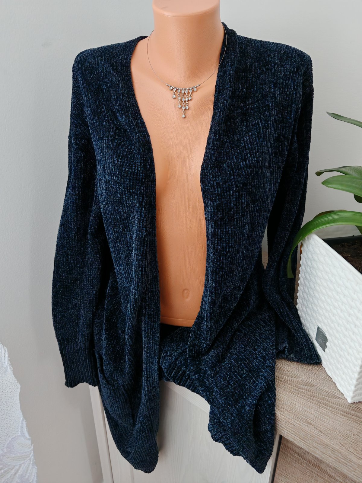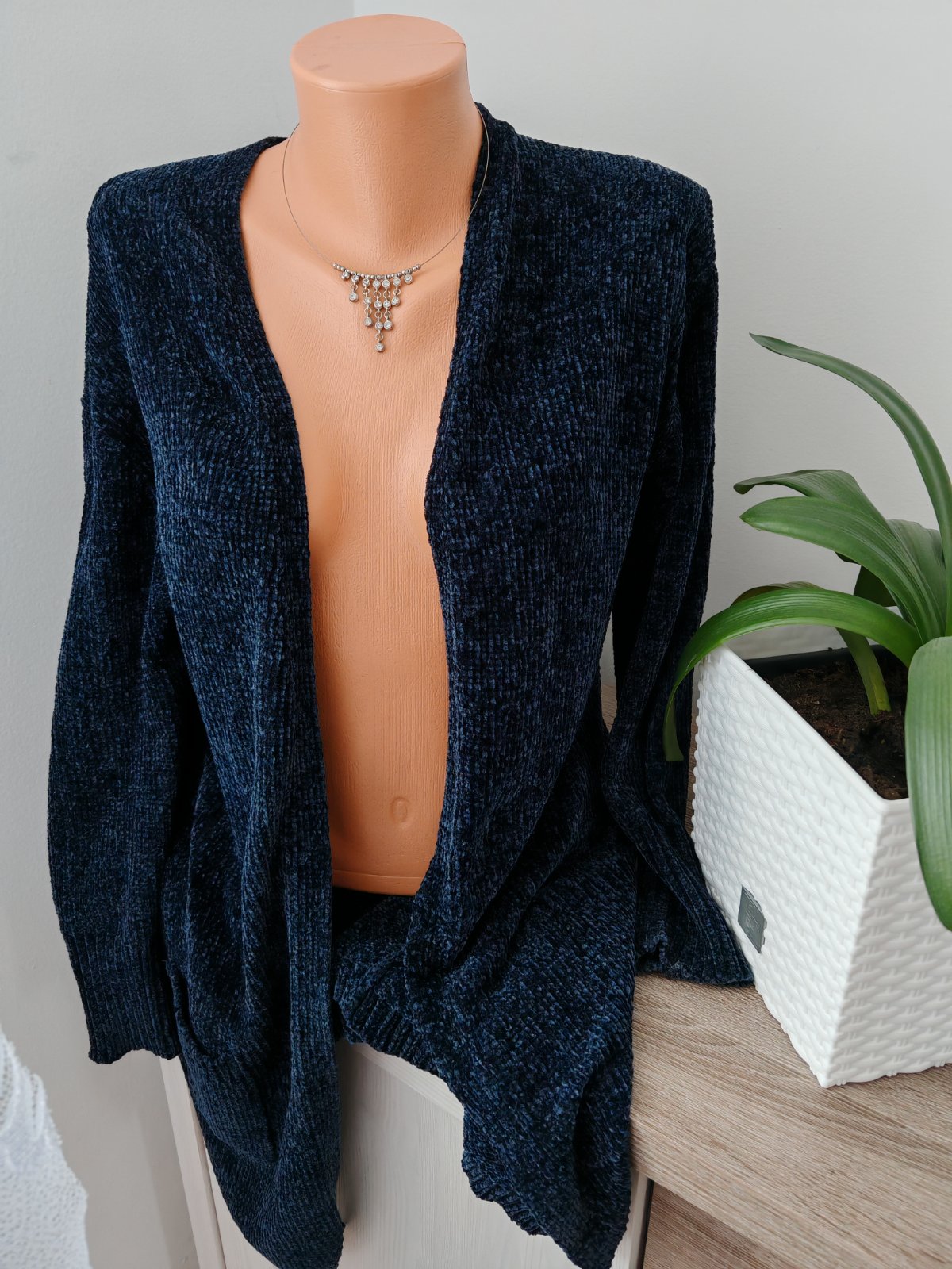 Predám krásny modrý dlhý kardigan, je tak poď zadok pri výške 168 ako krátke šaty alebo trenckot ,písaná je veľkosť M ale je taký Uni na S,M,L sa dá nosiť pekne, makkuckt úžasny, nestíham nosiť, je ako nový, lebo do roboty nosím elegantné teraz skôr saká a kabáty.