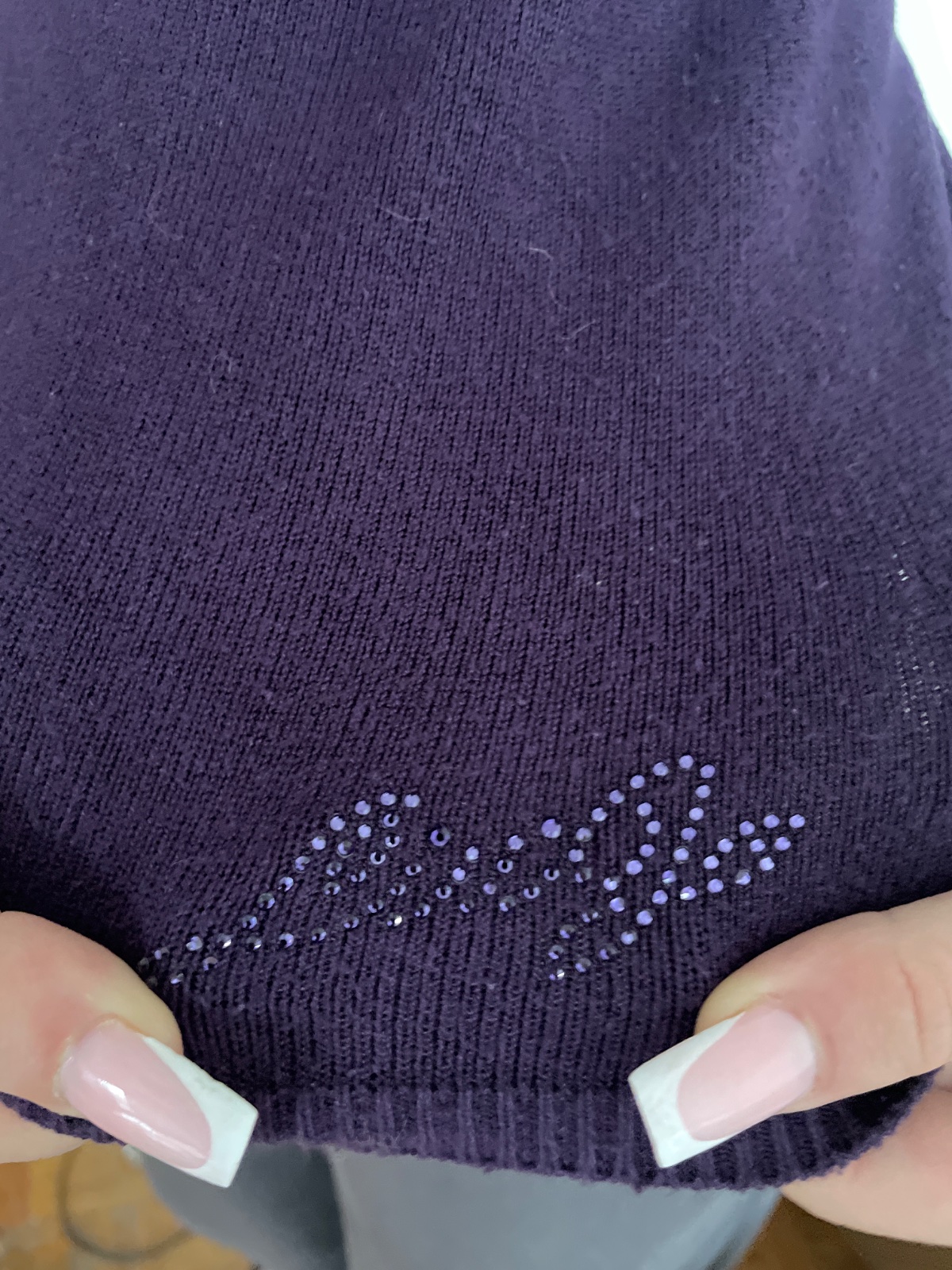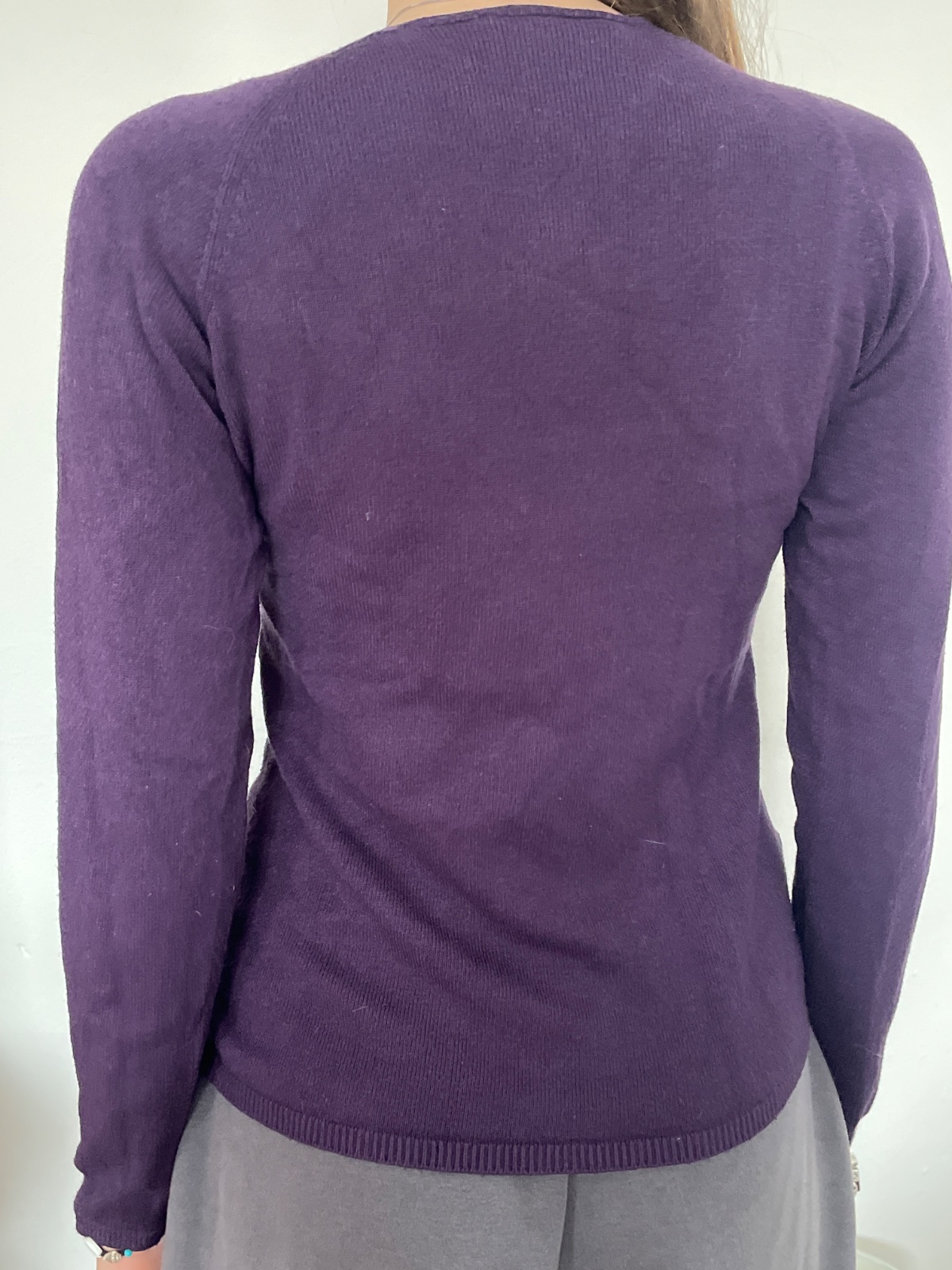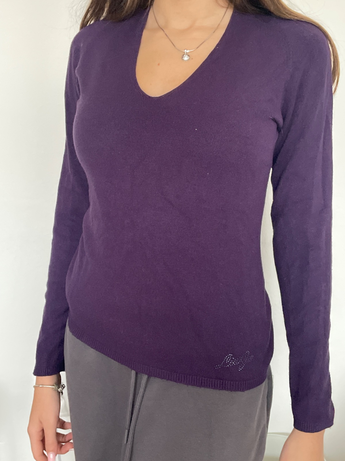 Pekný sveter s V výstrihom peknej fialovej farby.