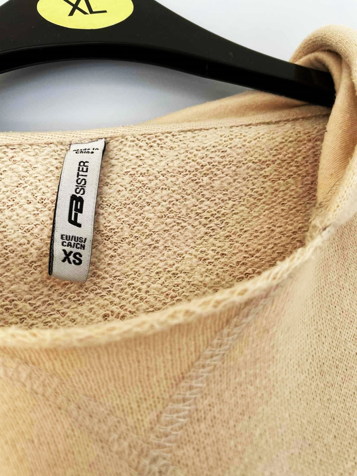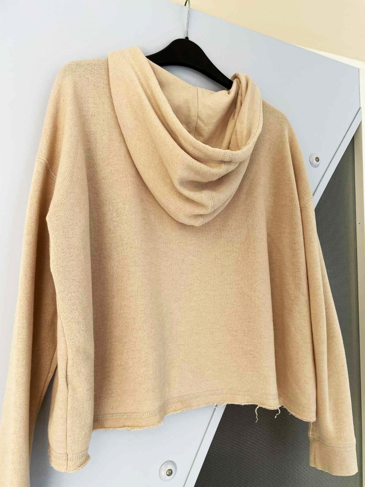 neznosená kvalitná mikina,je to krátky strih - nad pupok a širší,na roláčik,košeľu,tričko,alebo inak,farba béžová s nádychom do ružova