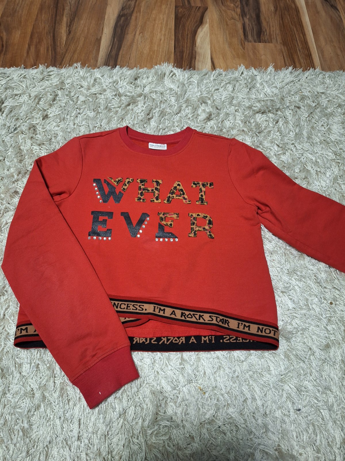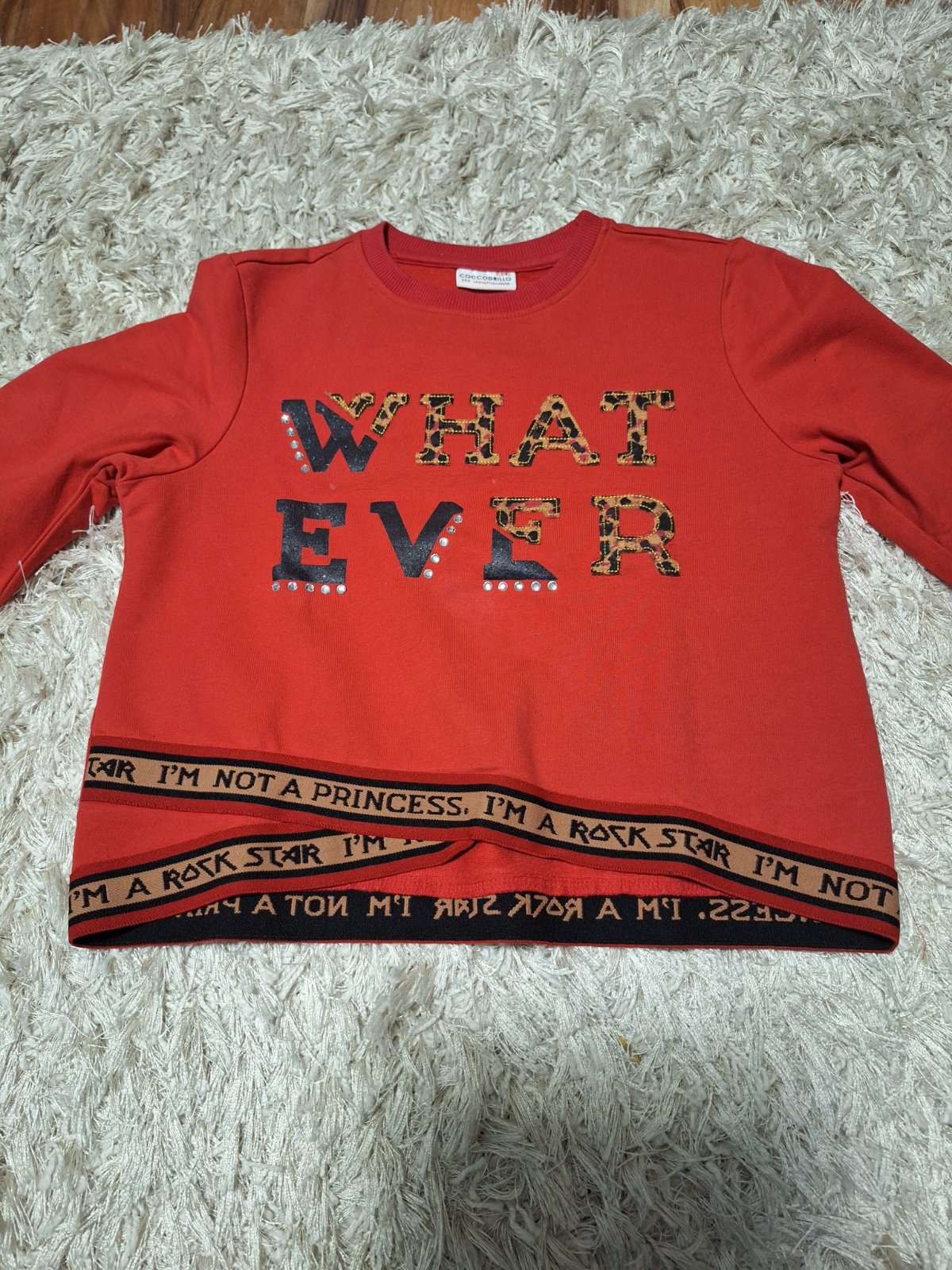 Červená mikina Coccodrillo velk. 152. Krásna, neoľutujete. Dlžka 58 cm, je teplá, š 2 x 47 cm v kľude, je poddajná.