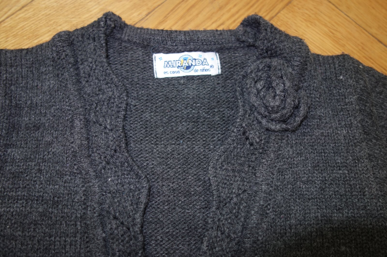 Výborný stav. Krásne pletené bolerko značky Miranda, lemy vlnkové a so vzorom, ozdobené kvetom. Kúpené v Španielsku.