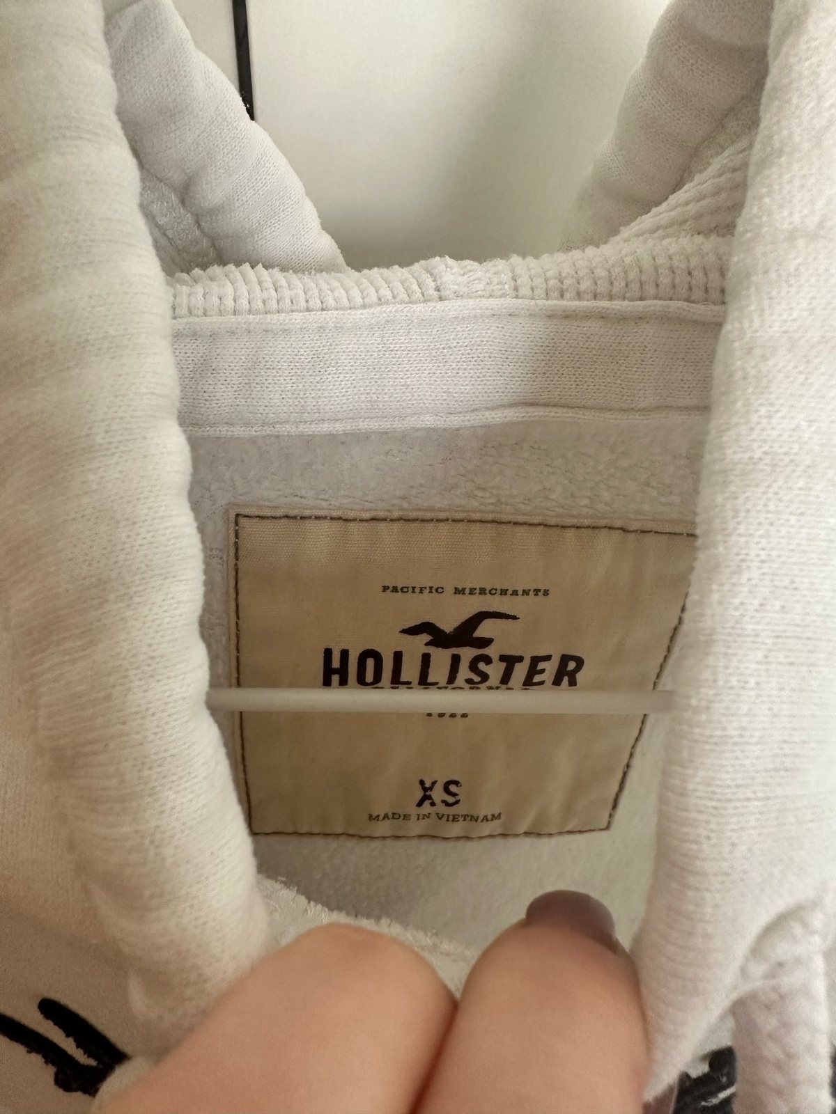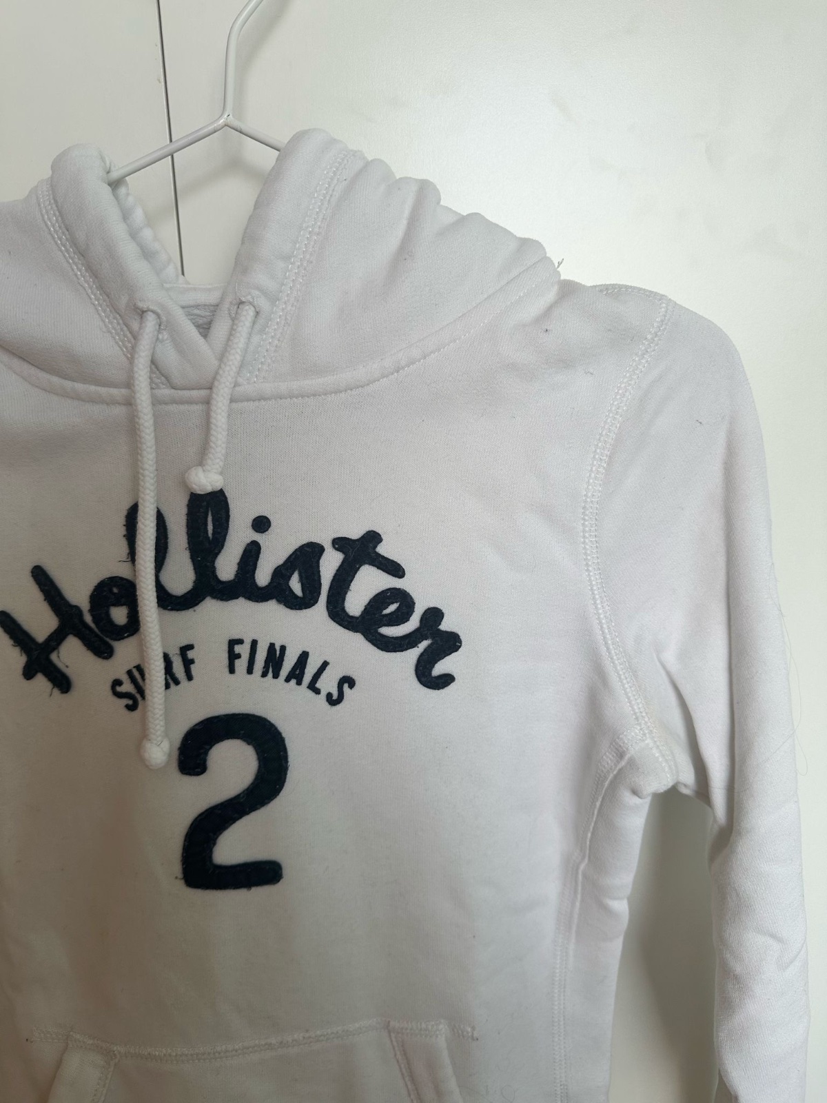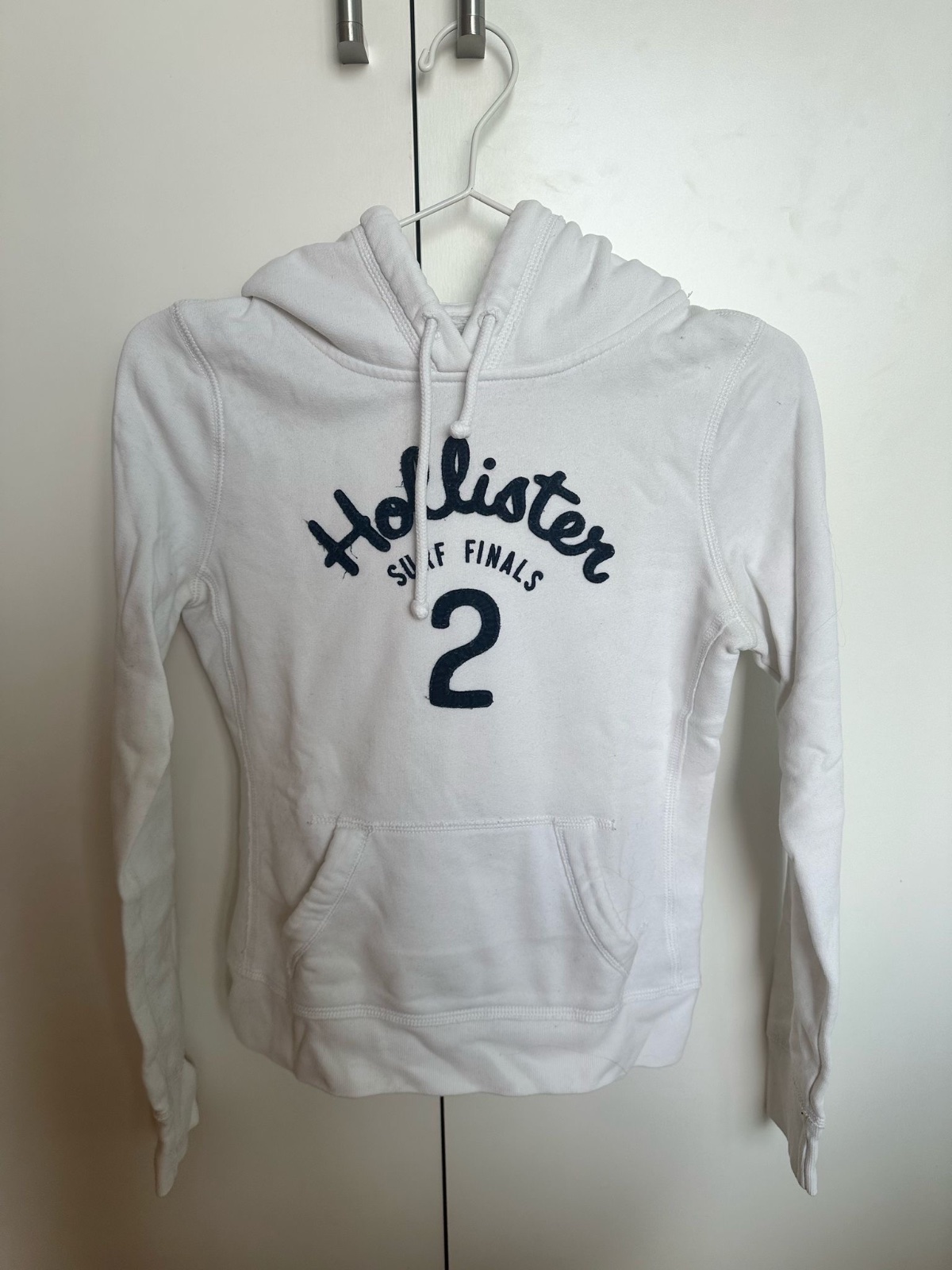 Nosená Hollister biela mikina s kapucnou cez hlavu veľkosti XS, bez poškodenia