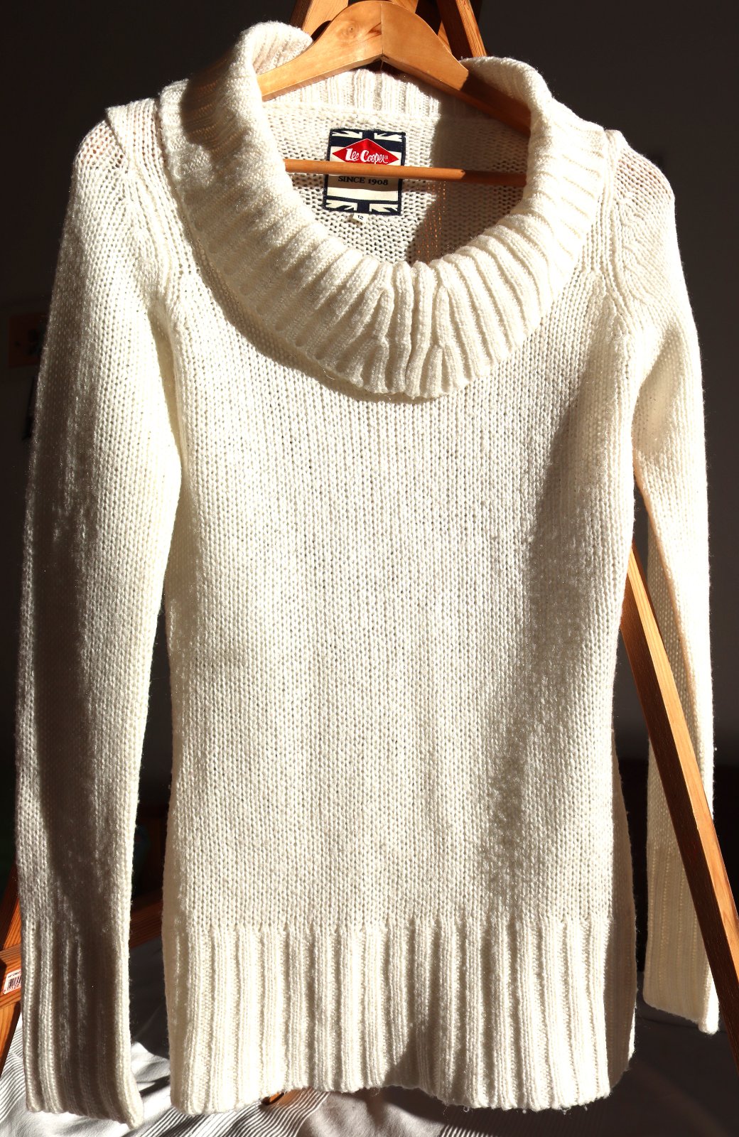 Rolákový svetrík v peknom nosenom stave, má drobné žmolky a je už trochu tuhší, ale stále pekný. Dĺžka 76, šírka 45. UK 12, ale je menší.