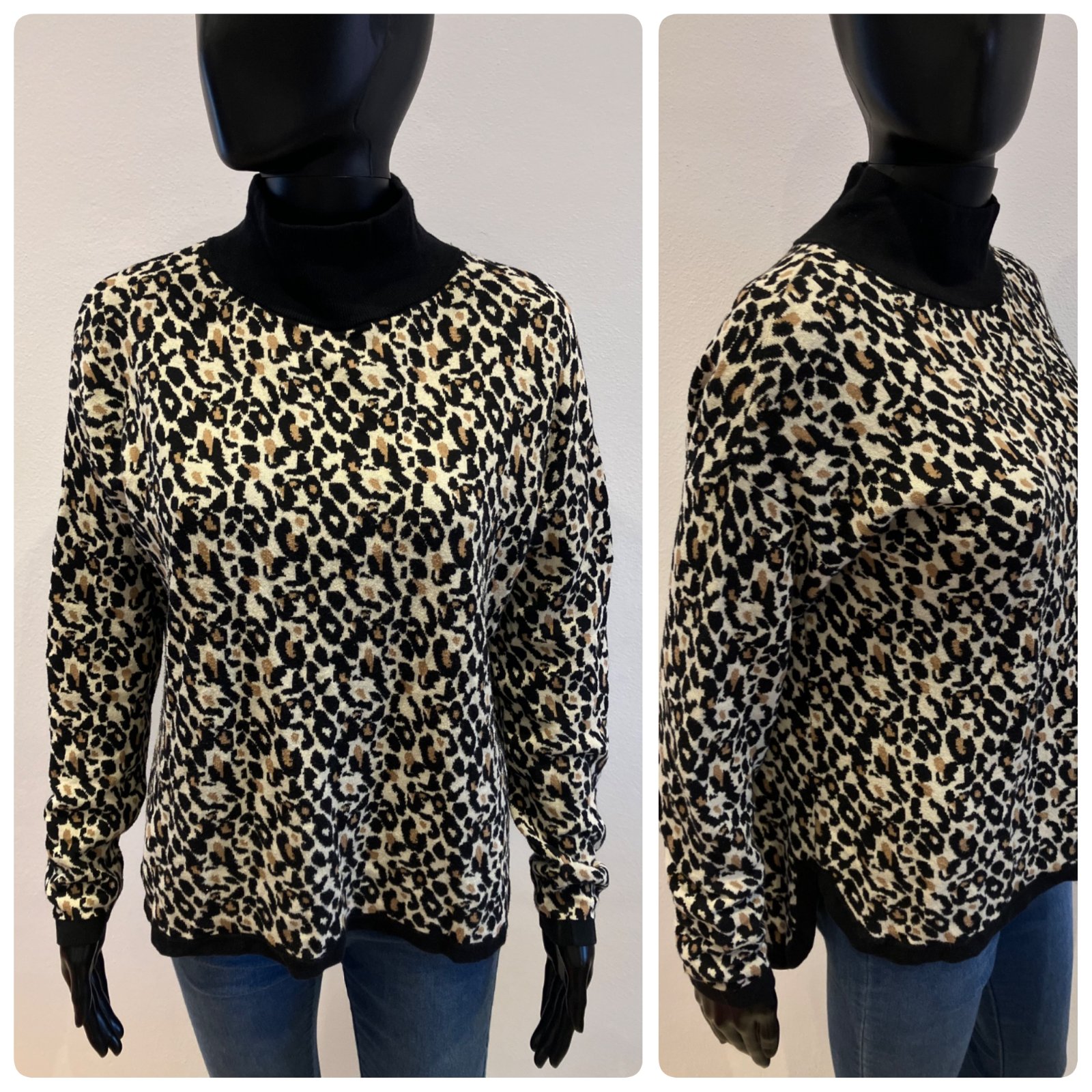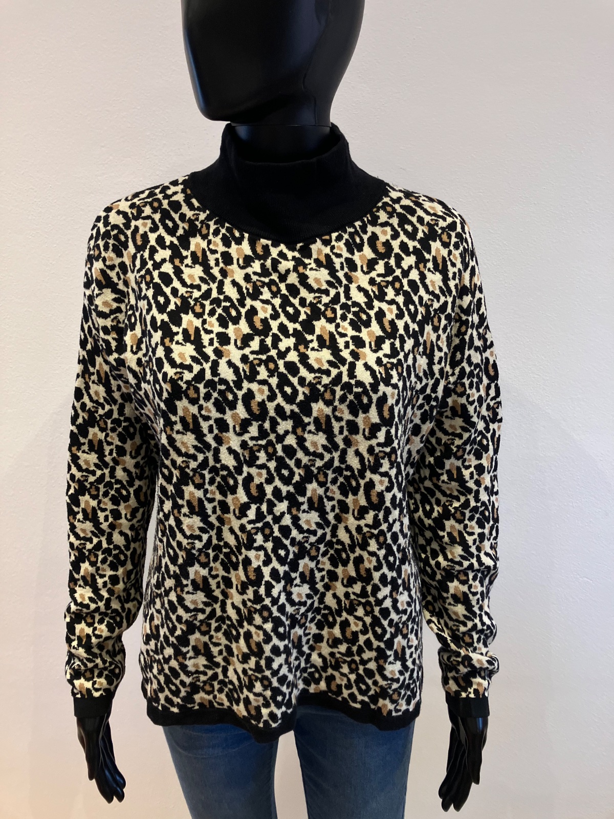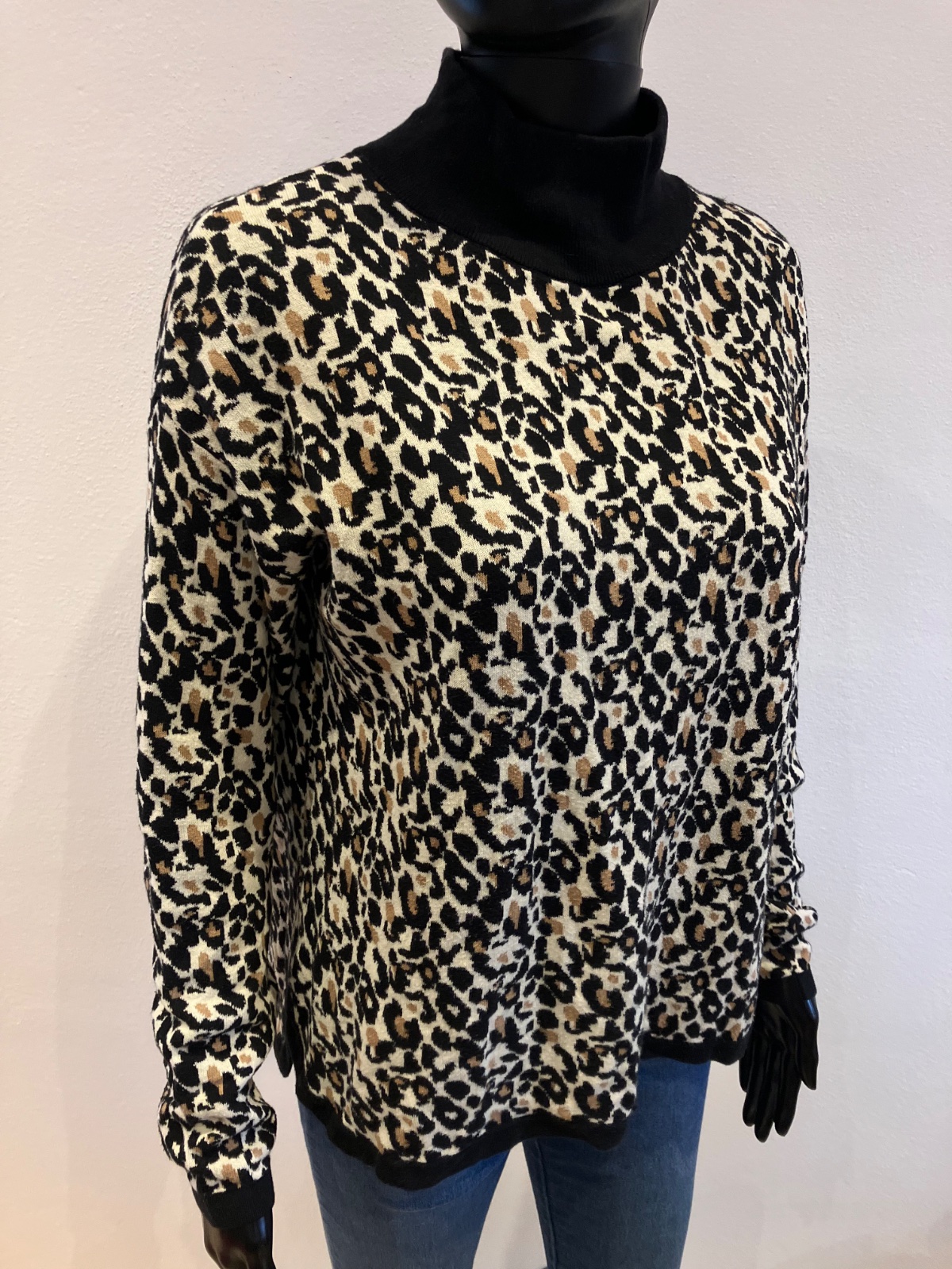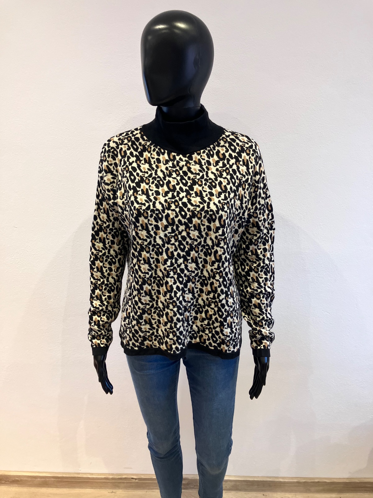 Dámsky sveter s rolákom, leopardí vzor, elastický, ležérny.
