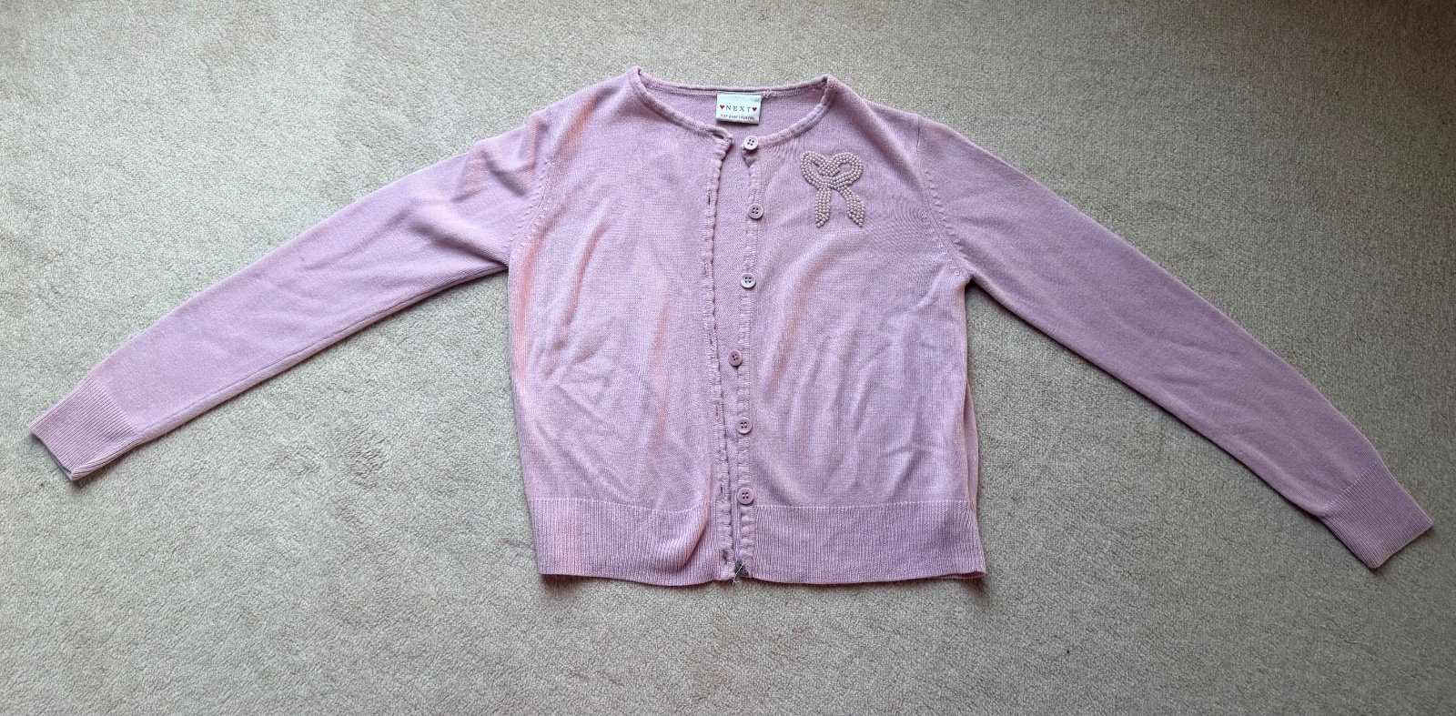 Krásny svetrík na zapínanie s mašličkou na pleci.