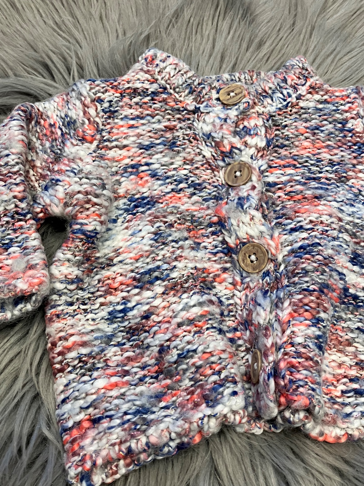 Dievčenský melírovaný sveter, elastický, zapínanie na gombíky.