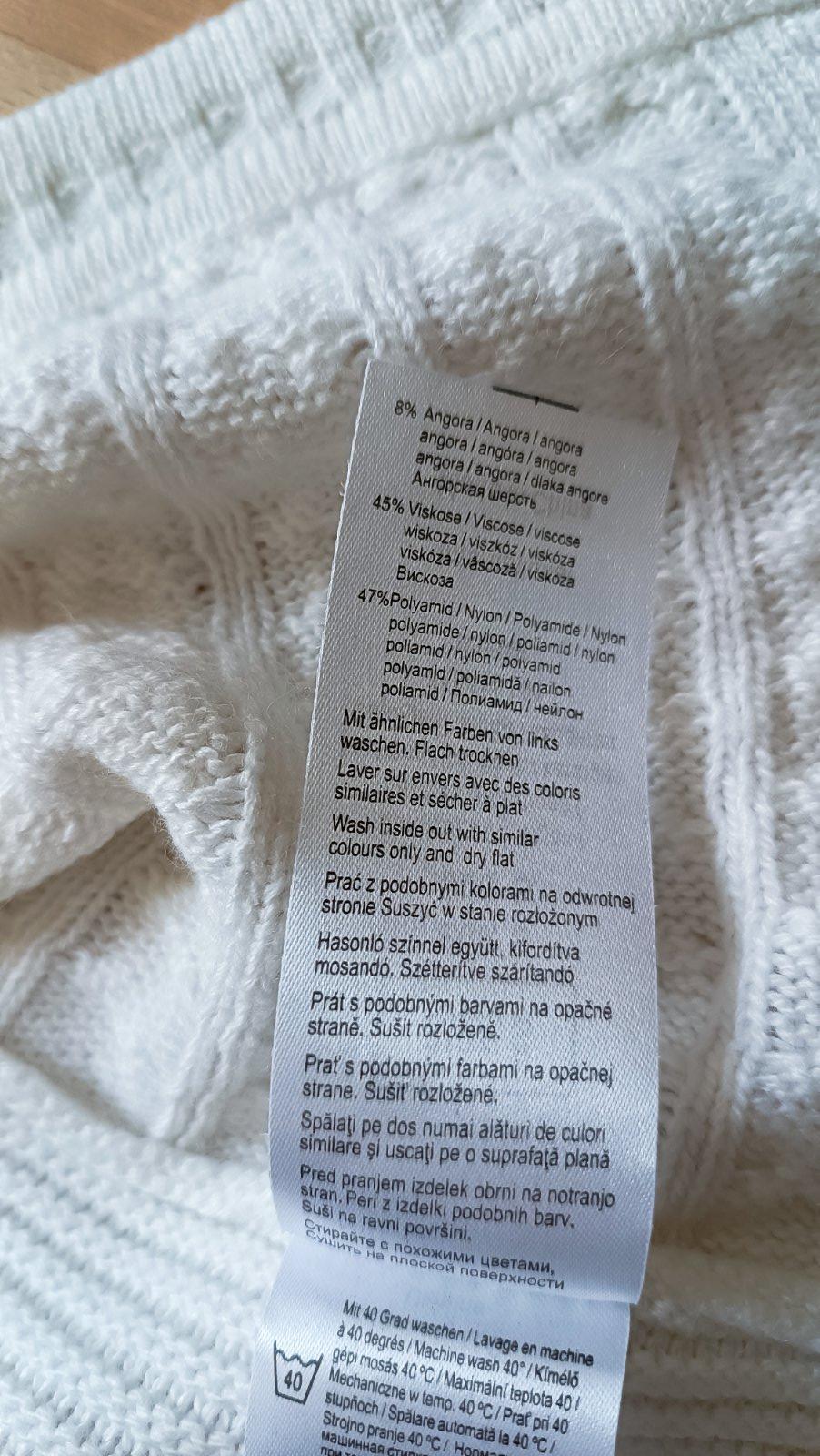 Dĺžka 46cm, šírka 2x 36cm, 45% viskóza, 8% angora,, 47% polyamid