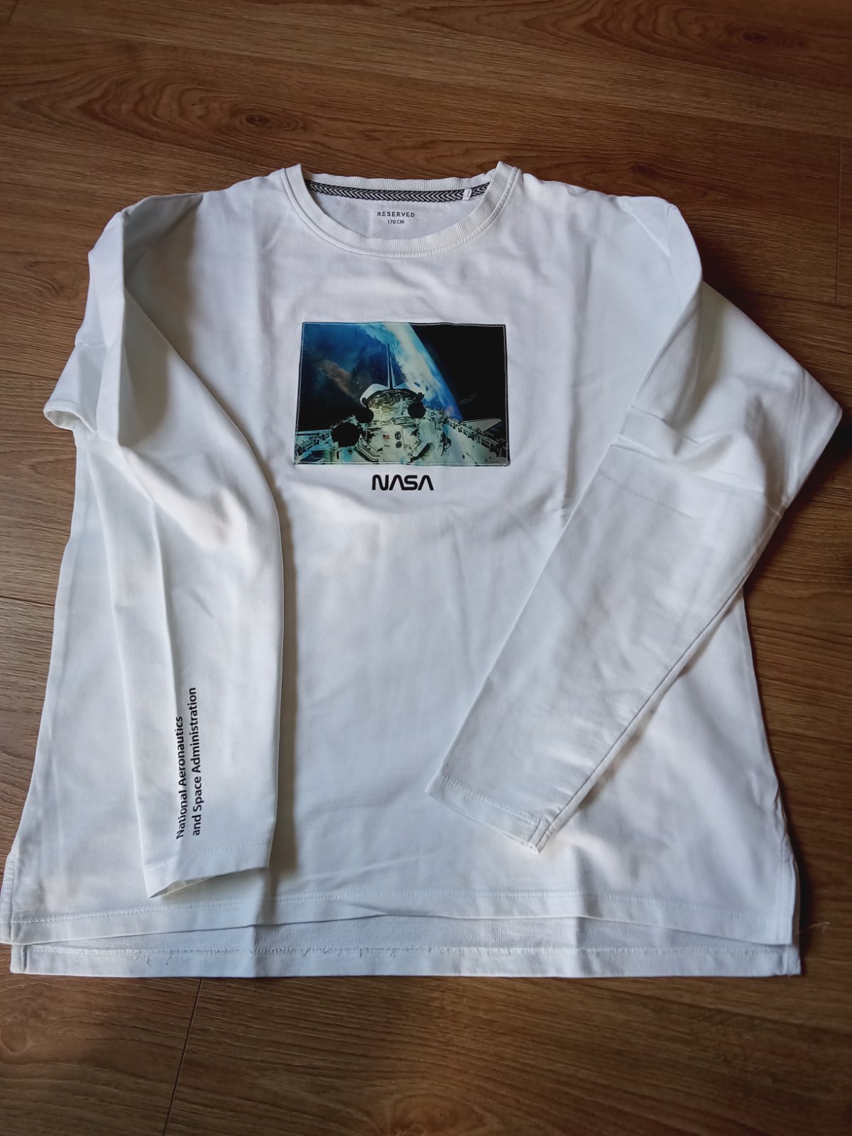 Predám tenkú mikinu Reserved Nasa vo veľkosti 170 po jednom dieťati vo výbornom stave bez poškodenia. Krásna žiarivá biela farba.