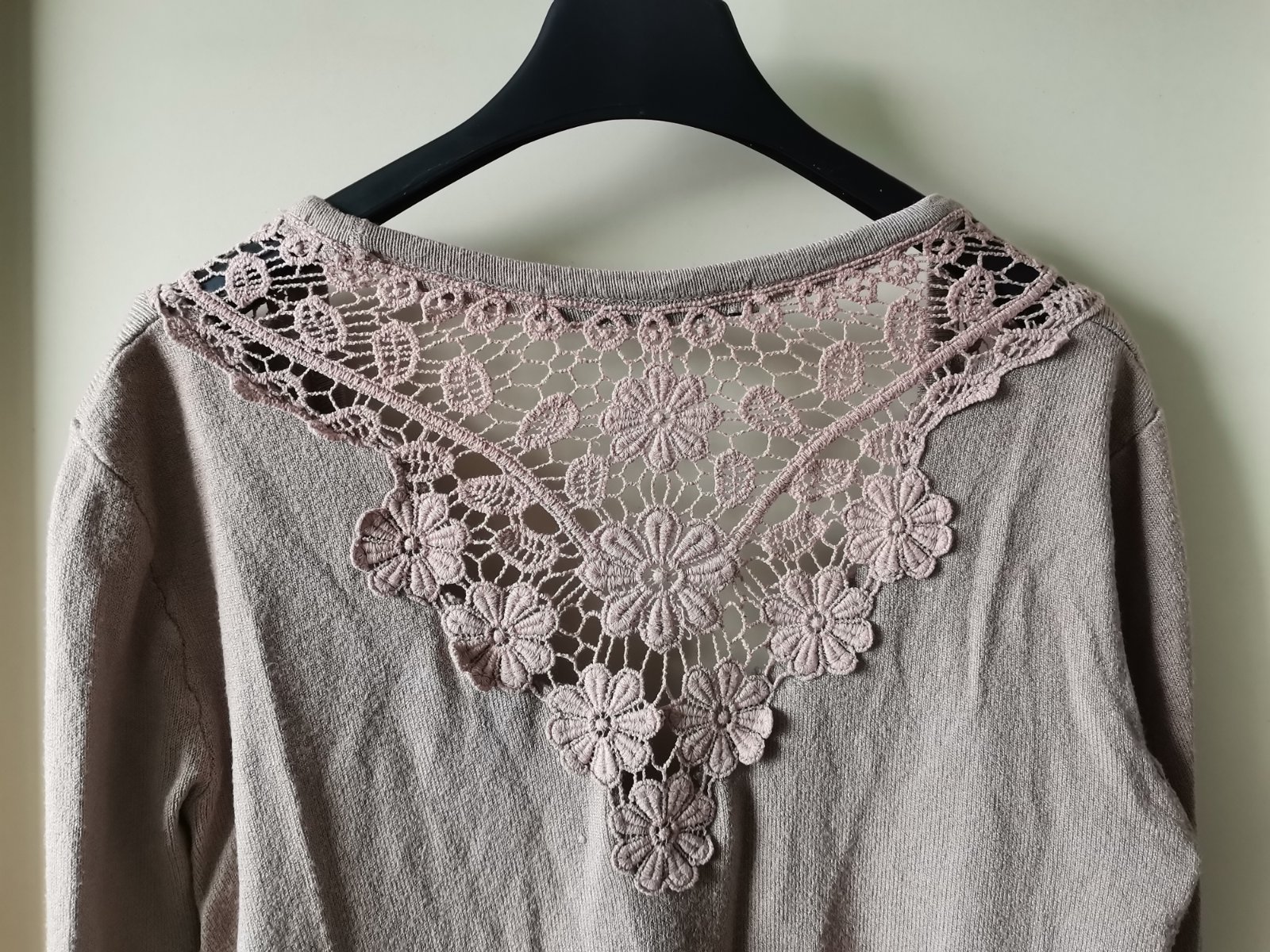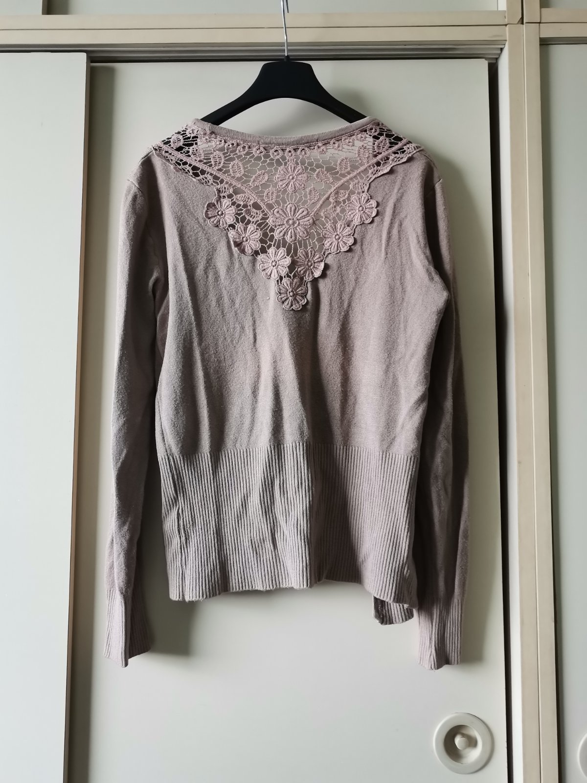 Tenší svetrík s čipkou na zadnom diele.