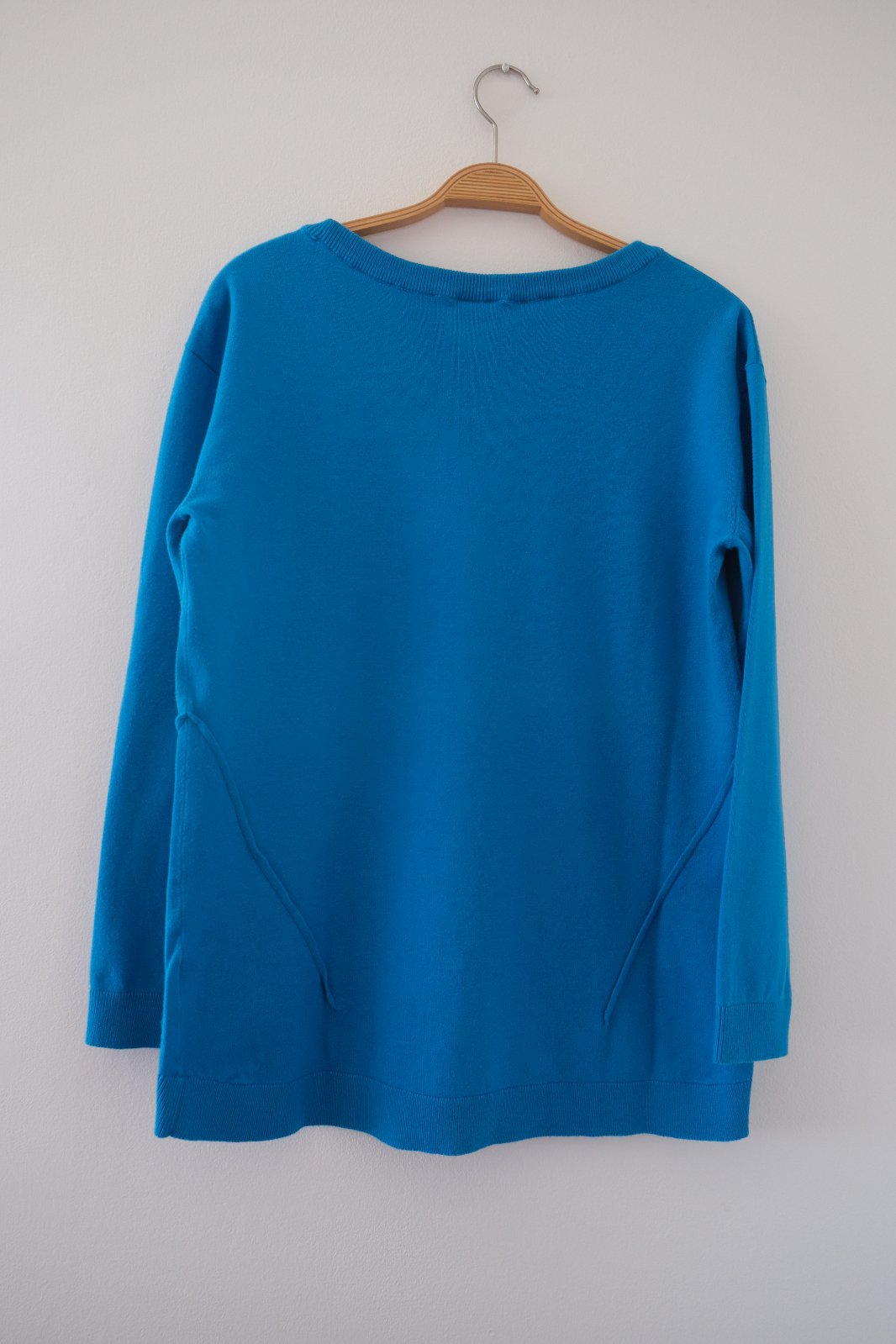🛒 Oceľovo modrý pulóver guľatý hlbší výstrih.