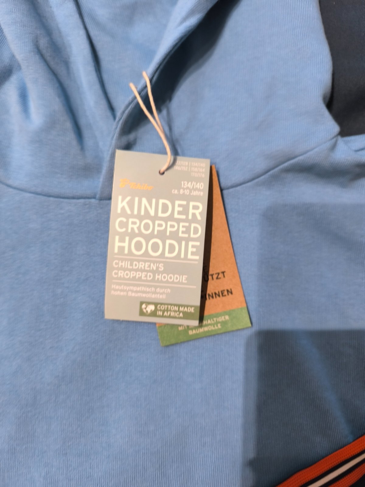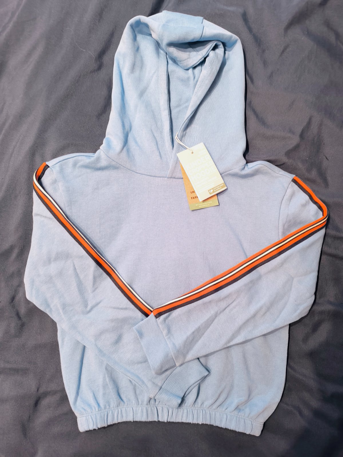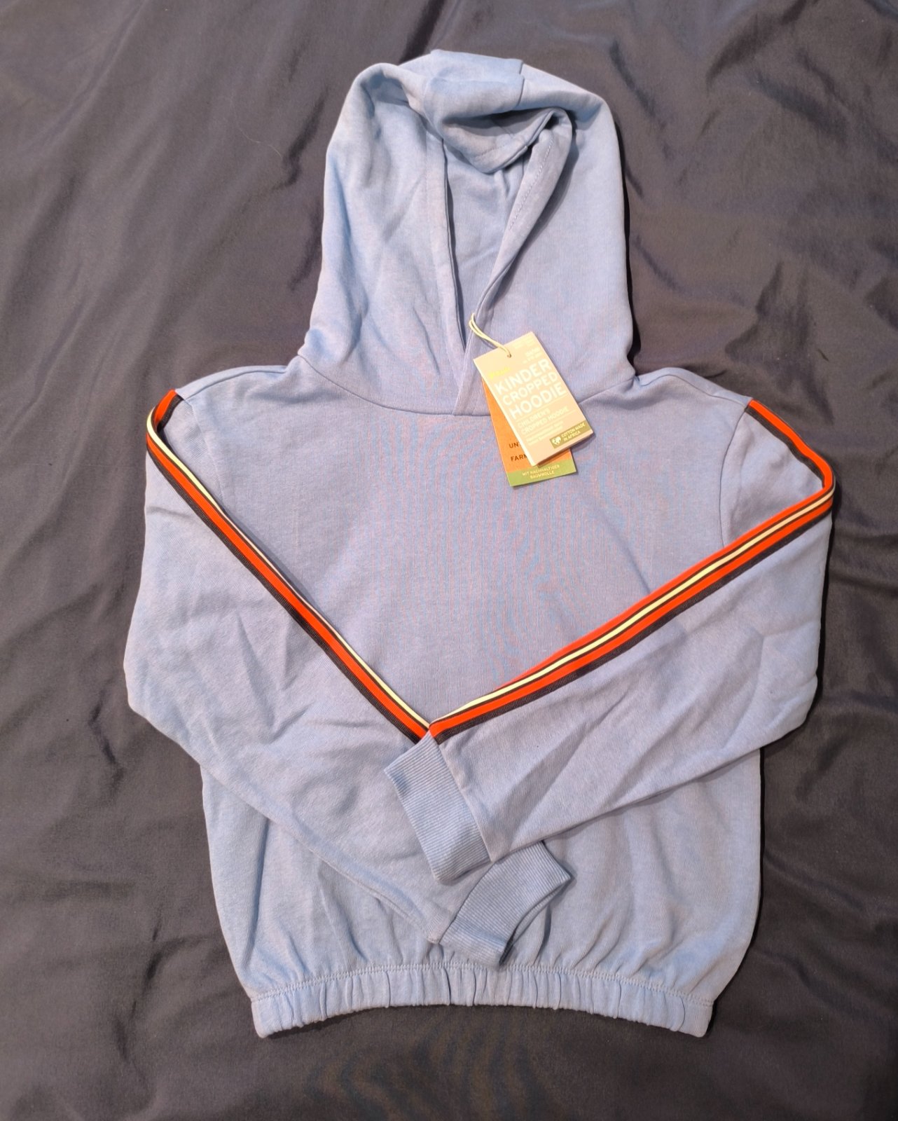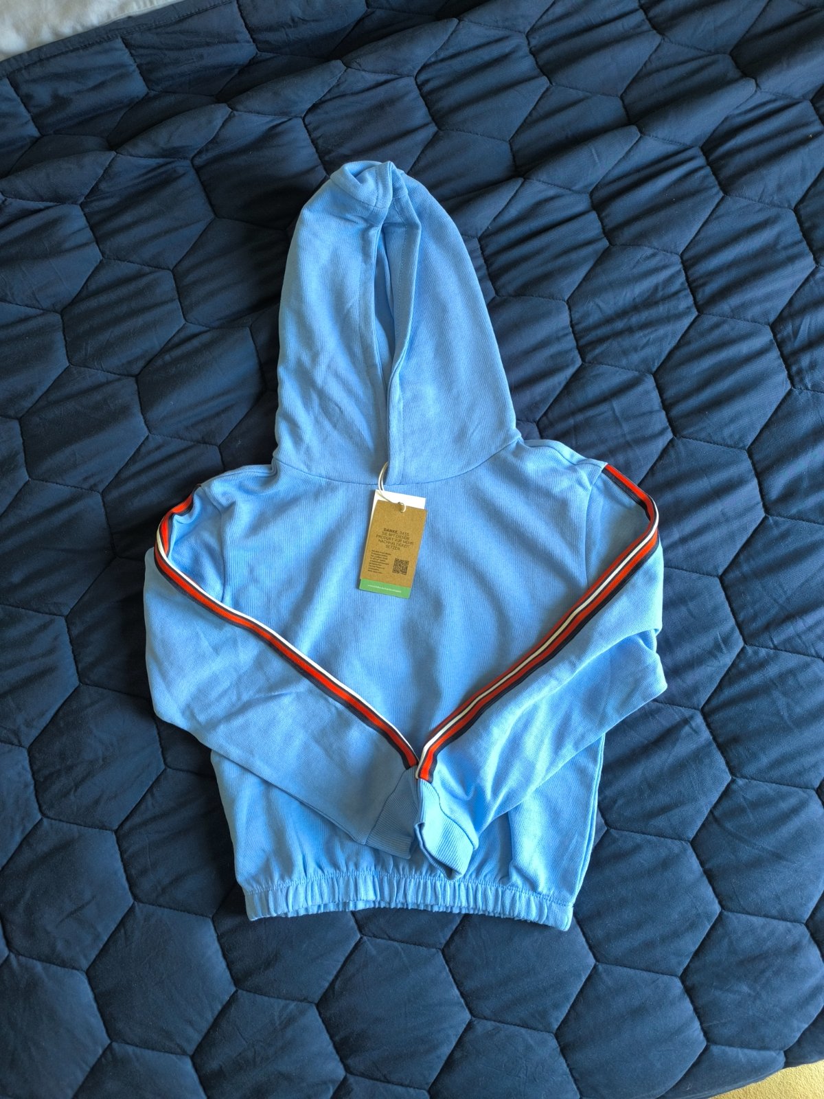 Nová, omylom kúpená chlapcovi. Bleduckomodra, krásna farba,nepoužíva. Crop, dole gumka, s kapucnou