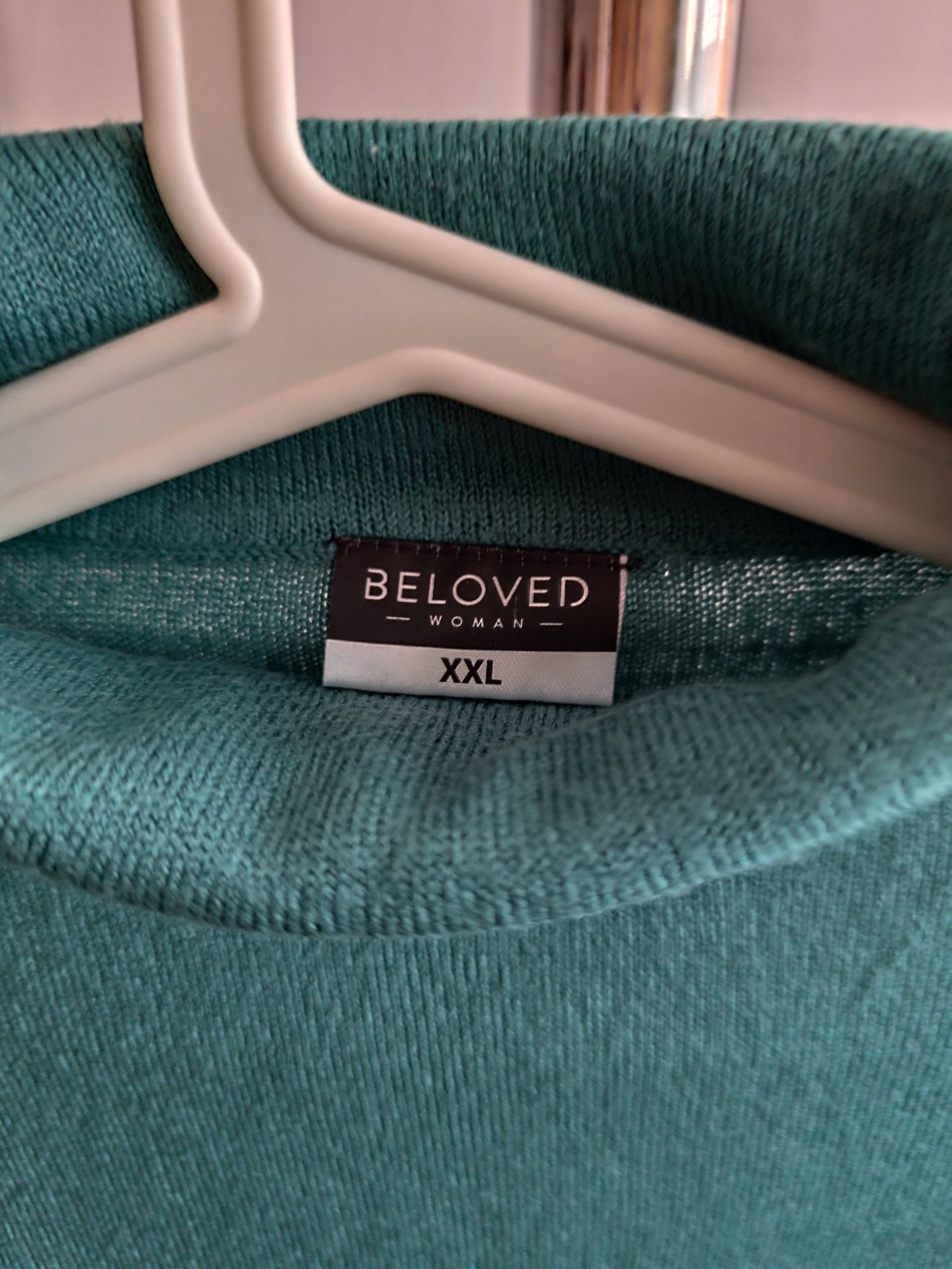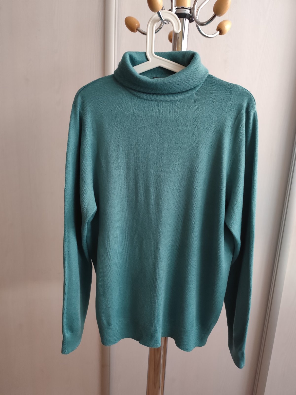 Veľmi príjemný, tenký rolák v dobrom stave. Je označený ako XXL, ale je o niečo menší. Farba ako na foto. Elastický, cez prsia 2 x 56 cm (povolí o 2 x 10 cm), dĺžka 69 cm.