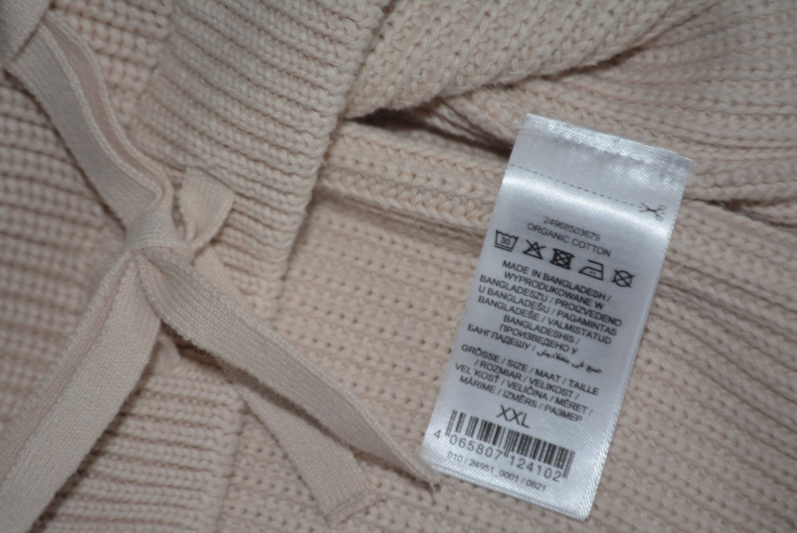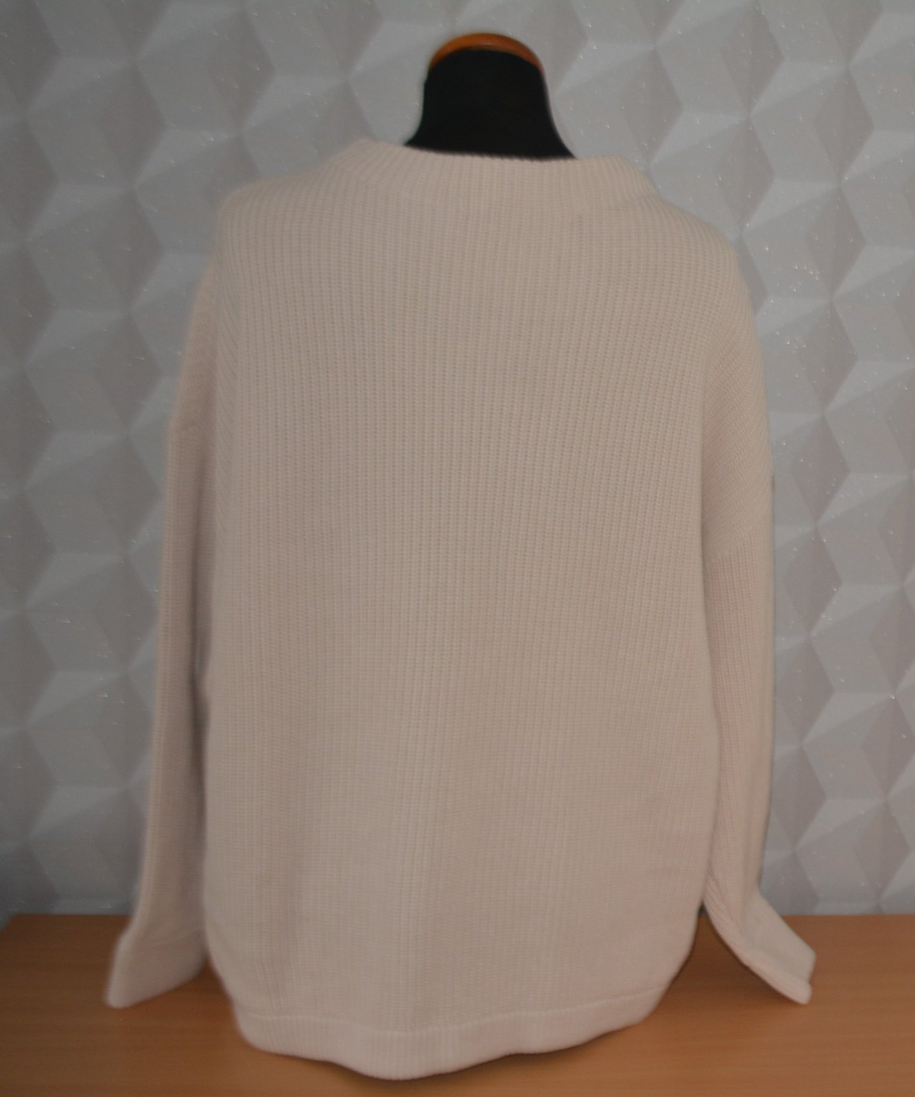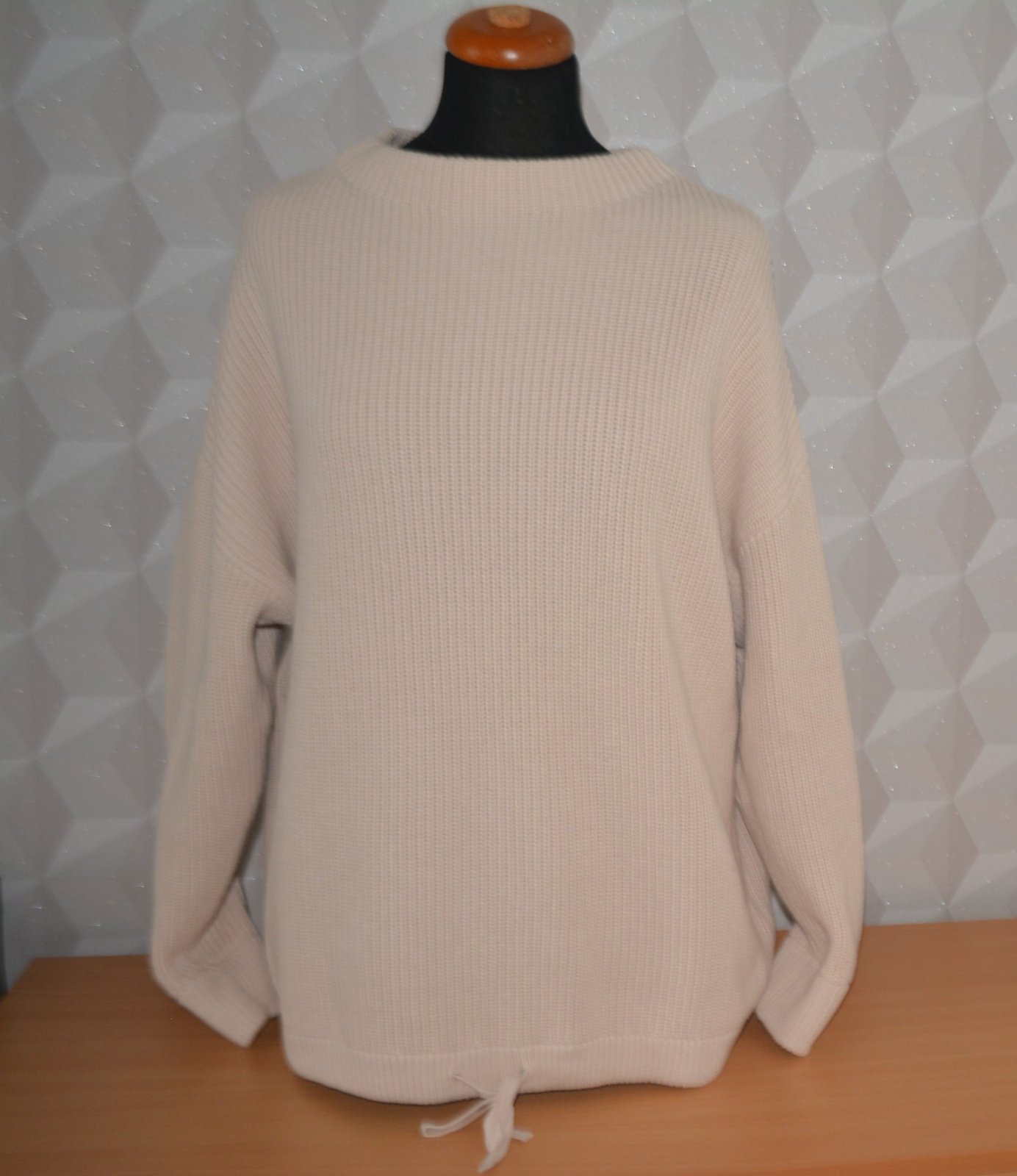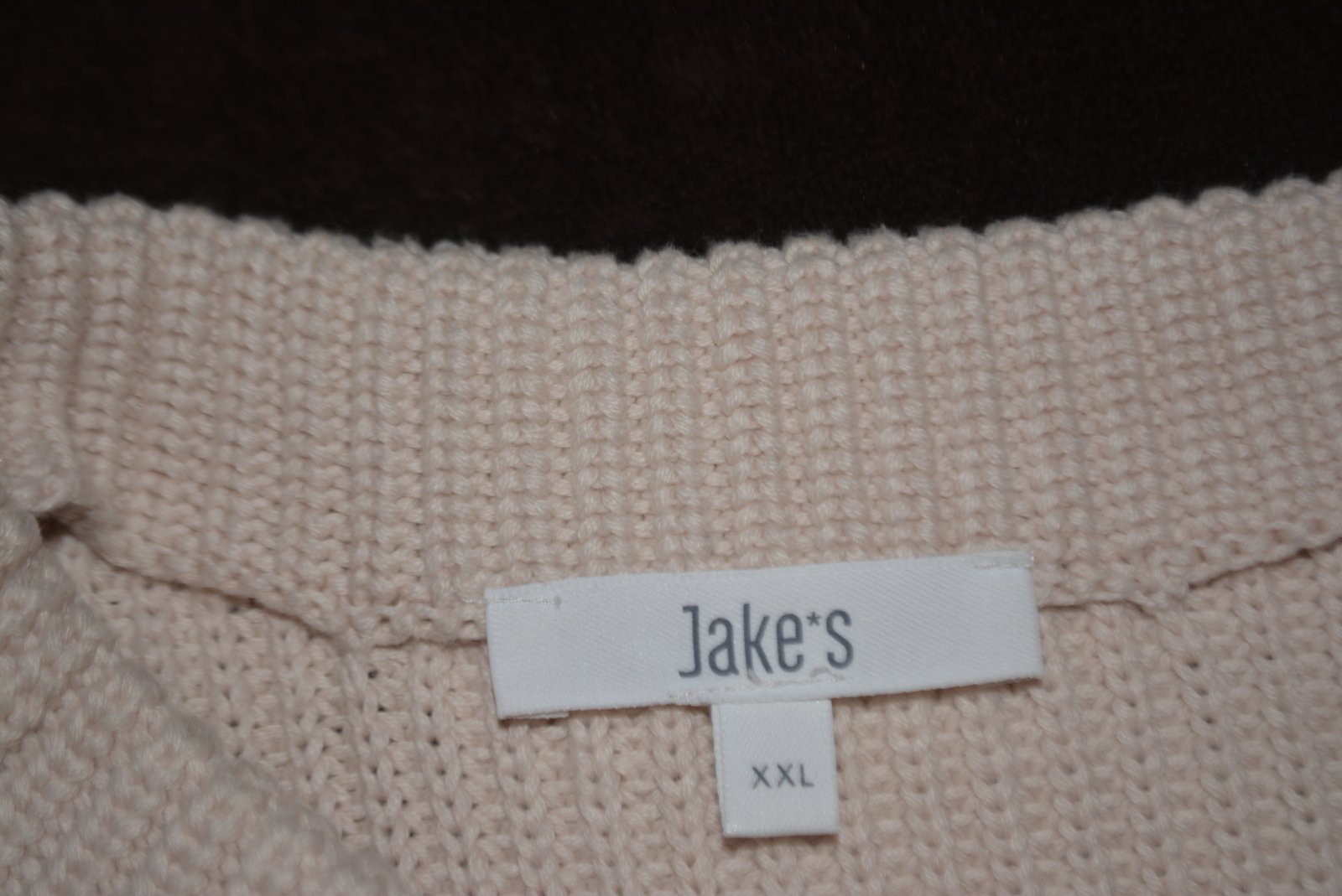 Pletený sveter Jake*s Casual z bavlny vo farbe ecru. Veľkosť XXL - rozmery: dĺžka 66cm, pod pazuchami 2x59cm, rukáv od krku 72cm, od pleca 49 a od pazuchy 42cm.