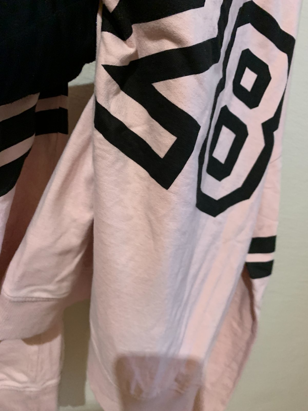 Bledoružová tenká mikina s nápisom Mickey Mouse a s číslom 28 na chrbte. Veľmi dobrý stav bez poškodení.