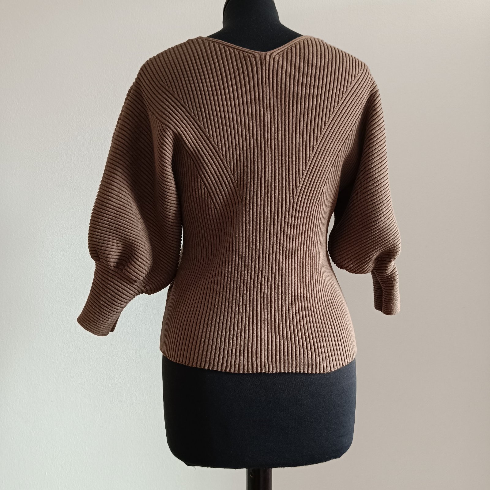 Sveter párkrát oblečený, veľmi pružný. Hruď 42-60, dĺžka 56, rukáv od krku 49. Rukáv 3/4-ový.