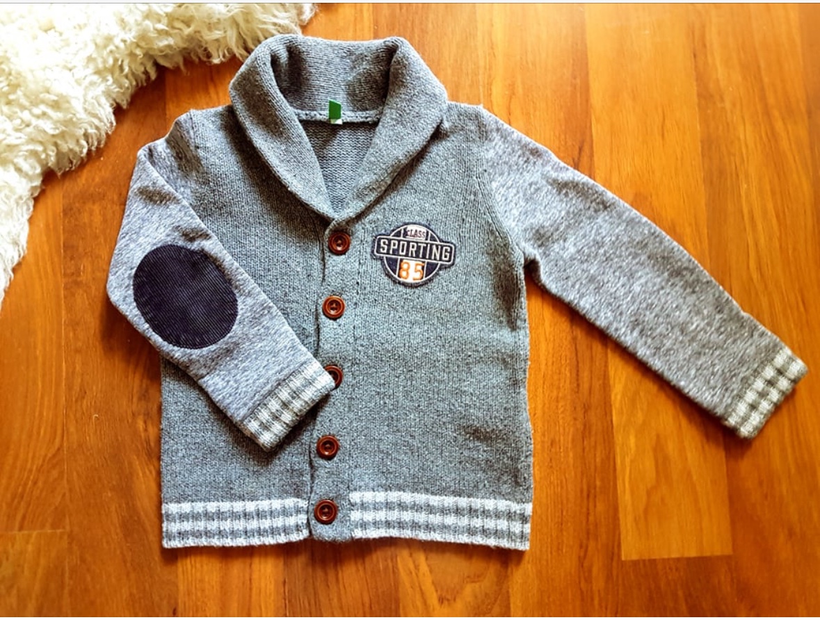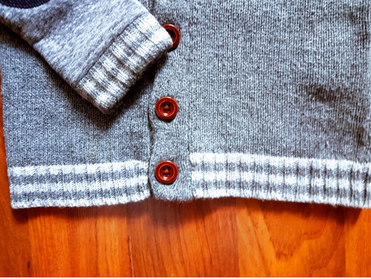 Neskutočne krásny svetríik s fazonkou okolo krku. Krasne uaže na košielke aj na tričku. Zapínanie na 5 gombíčkov.