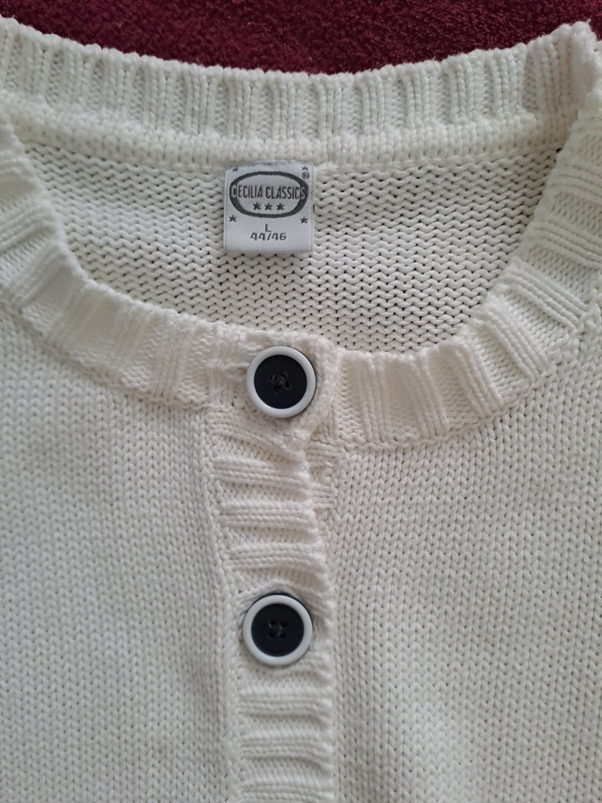 v super stave, tenší biely kardigán, obsahuje elastan, teda aj velkosť 46 natiahne určite. len odskúšané, netopiere rukávy