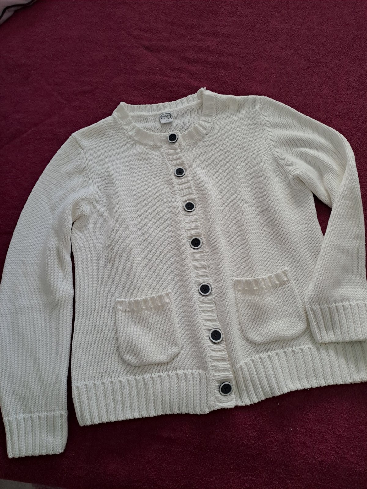 Pekny kardigan malo noseny,nepoškodeny,dlžka-88cm ,dlžka rukava od pleca 68cm od krku 79cm ,širka pod pazuchami bez natiahnutia 53x2cm povoli na viac