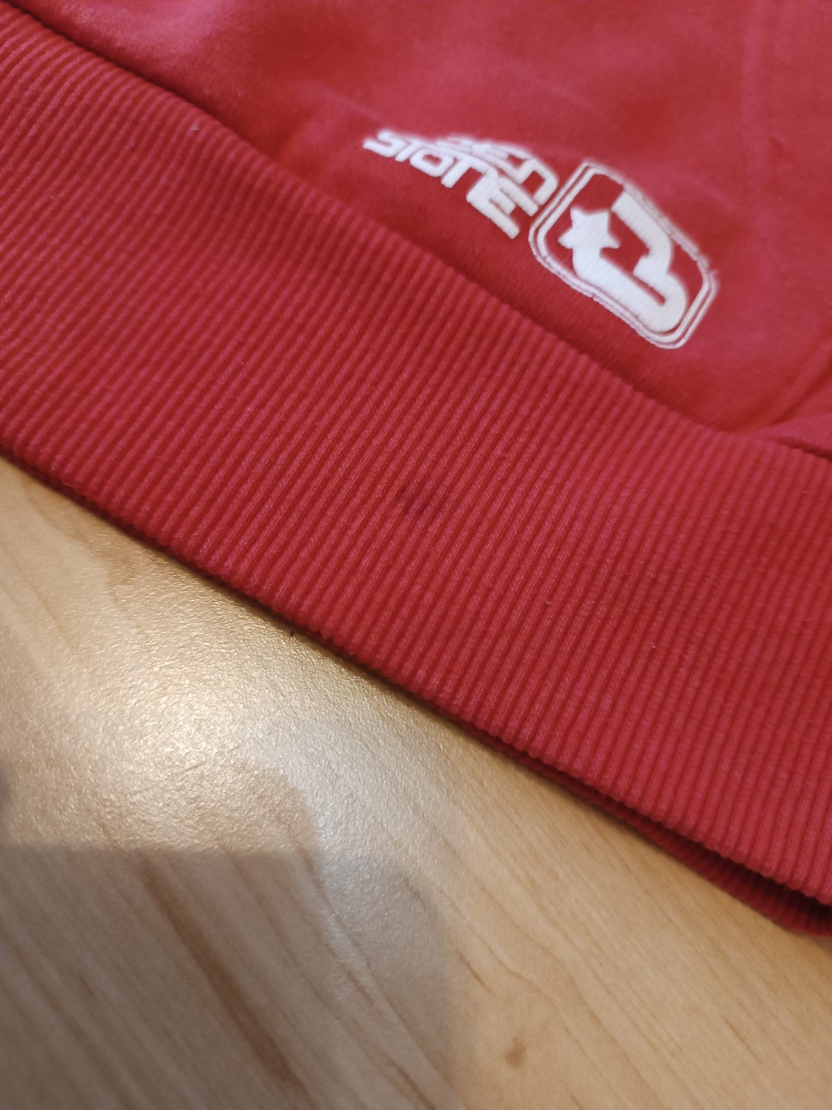 Vpredu na leme fliačik, predné vrecko na boku vypáraná niť. Foto v prílohe, na doma ešte poslúži.