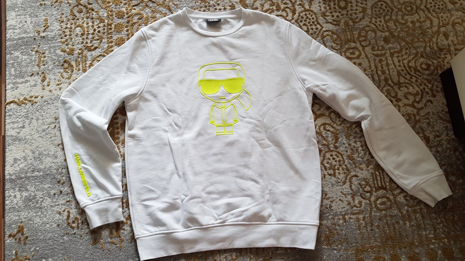 Predam bielu mikinu original Karl Lagerfeld, nebola nosena, len oprata. Krasna, vhodna aj ako darcek. Je to panske M, rozmery su na foto.