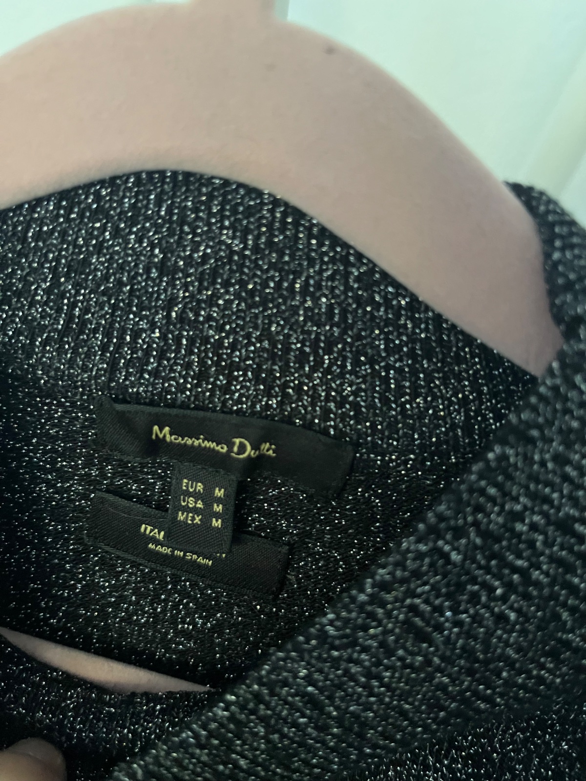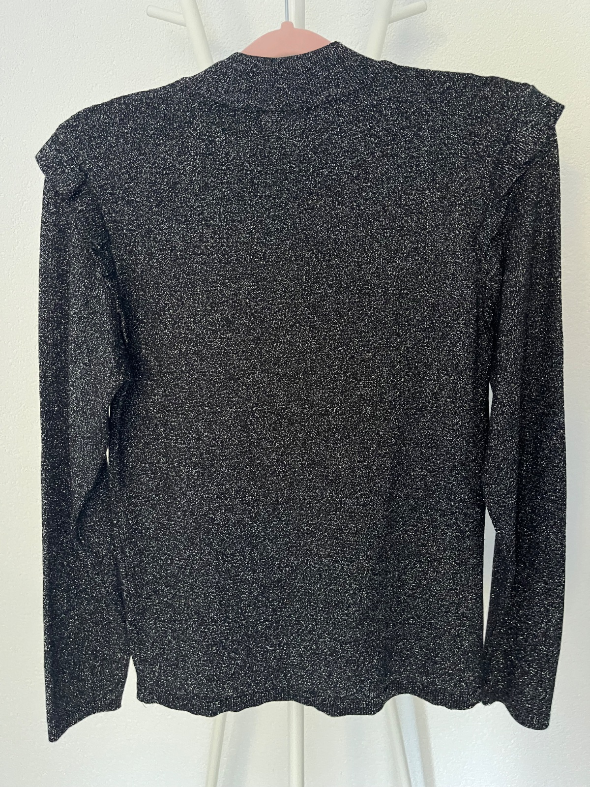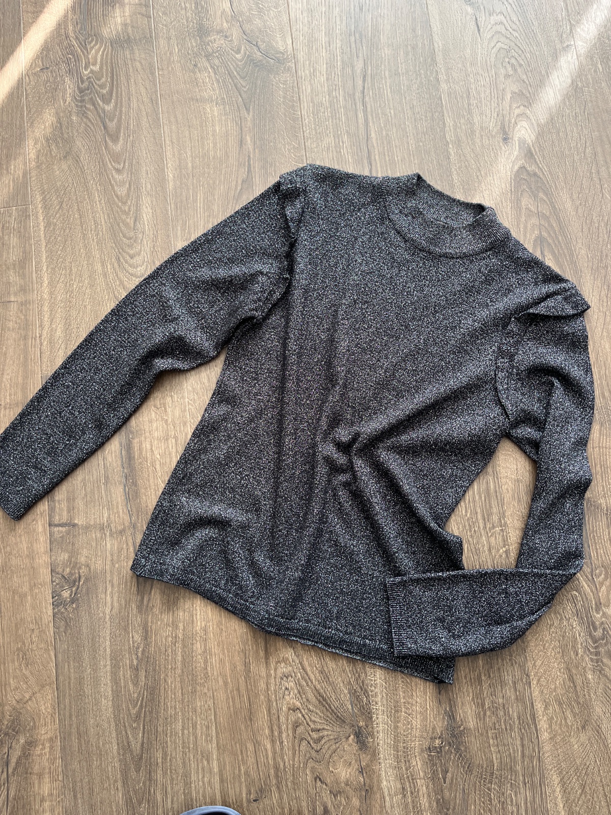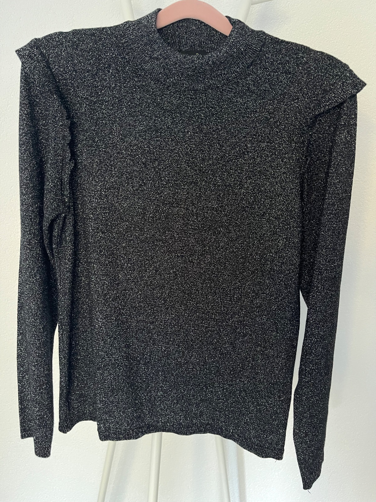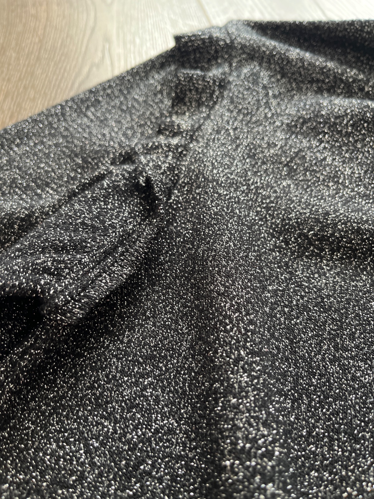 Raz oblečený v stave nový elegantný tenký pulover čierny husto presivany striebornou niťou,ozdobný prvok na ramenách PC:50€