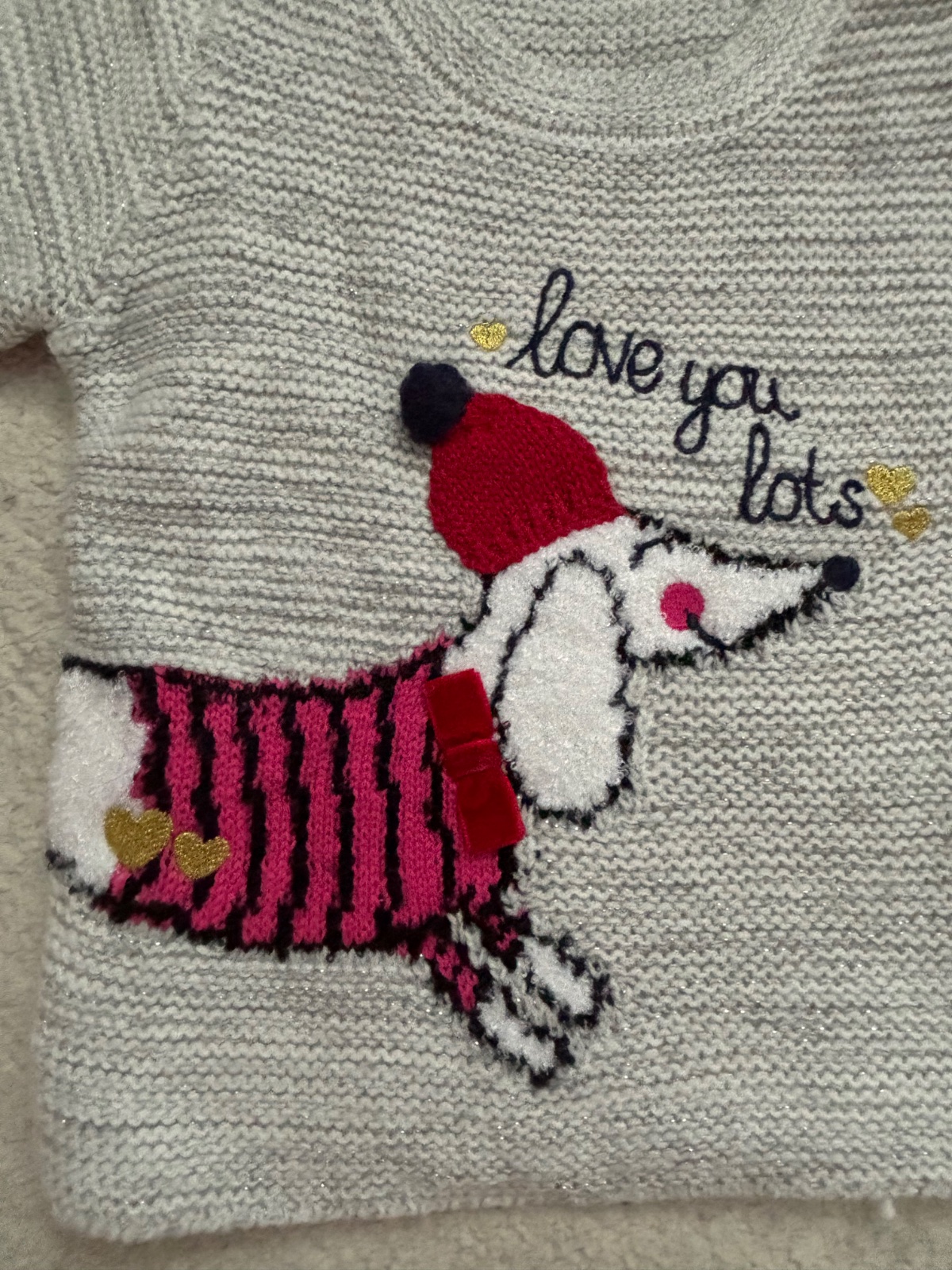 Predám vo výbornom stave bledosivý svetrík s ružovými mašličkami so zapínaním na gombíky slovenskej výroby, značky La Vida, veľkosť: 56