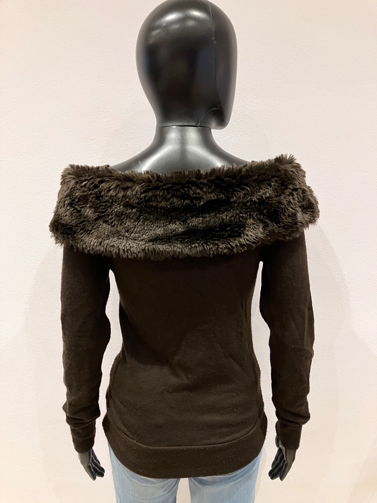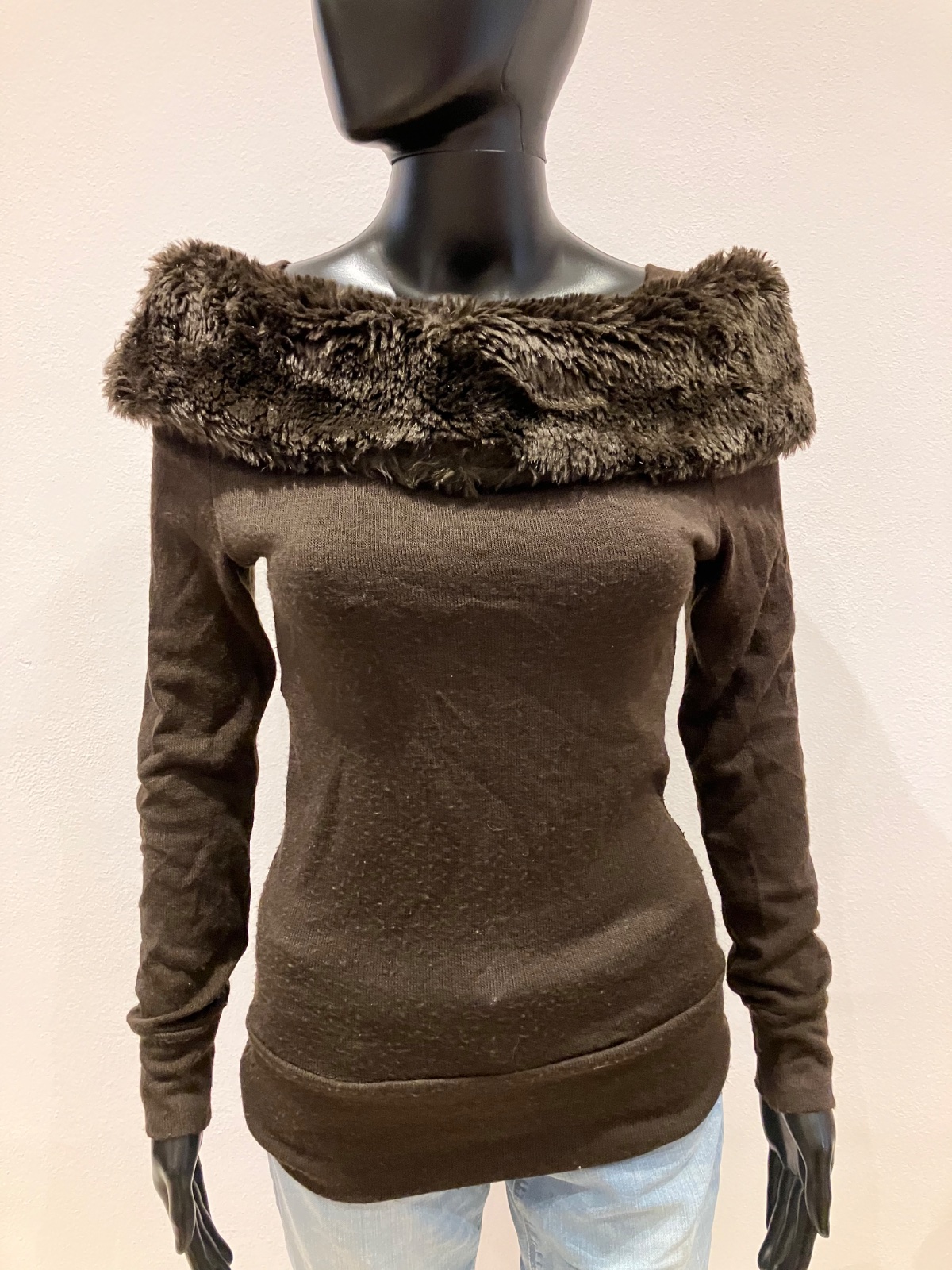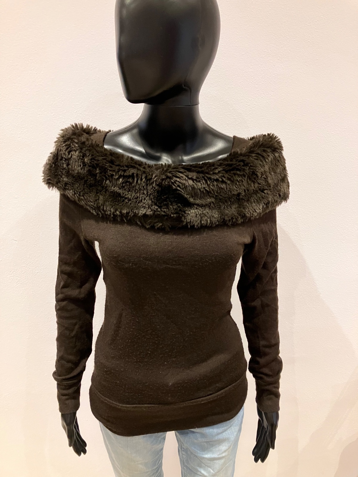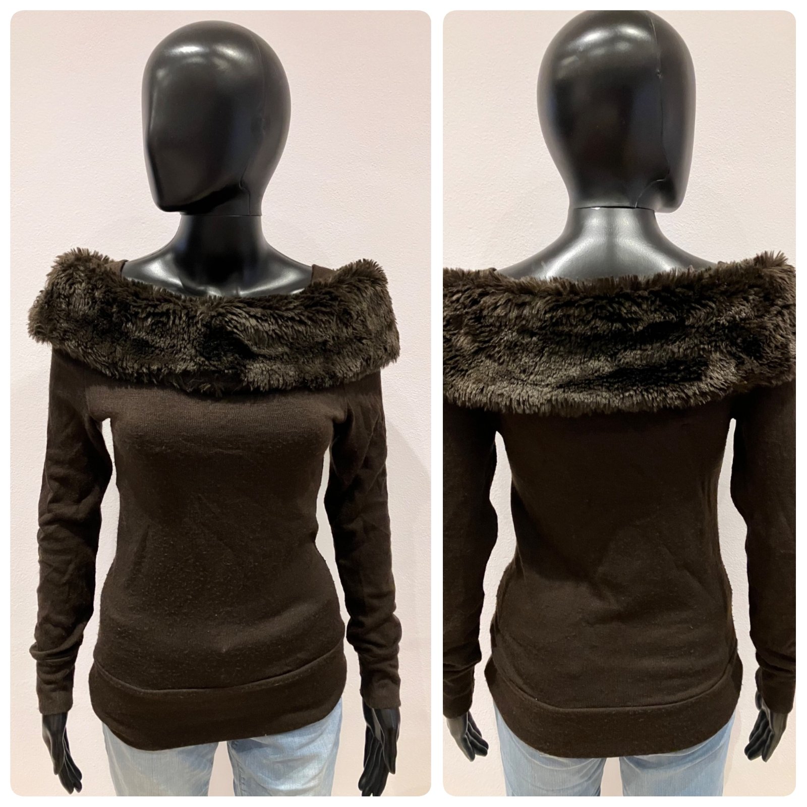 Dámsky sveter s huňatým golierom, elastický, tenký, materiál 95%acryl 5%elastan. Veľkosť cca M.