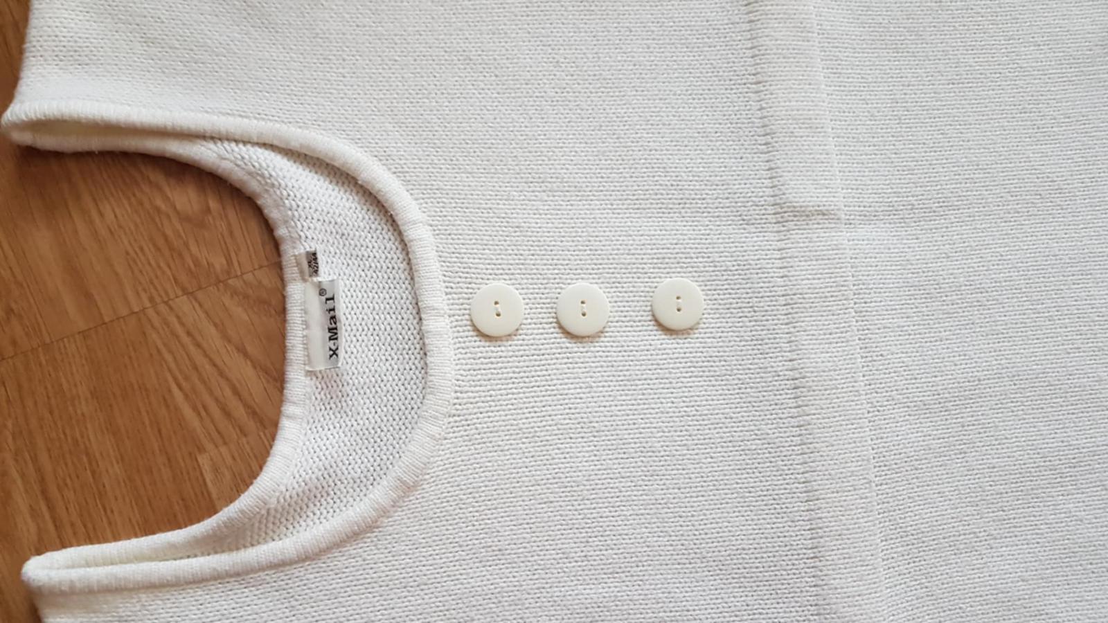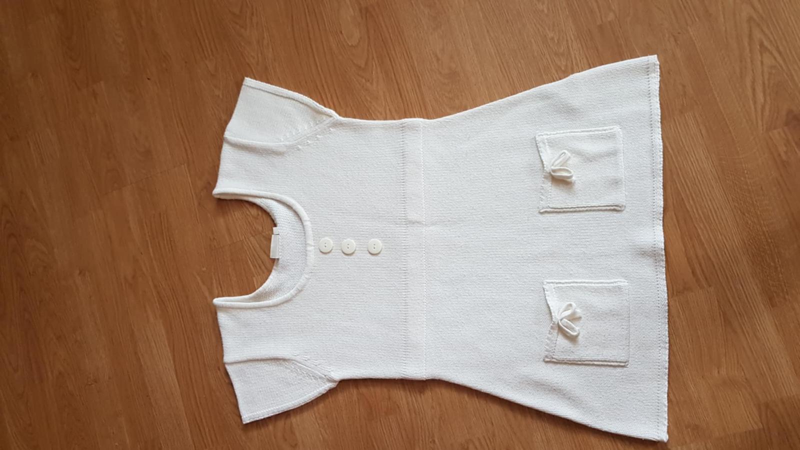 Pekná vesta vo výbornom stave, značka X-mail, v. písaná 42/44, ale odporúčam na max. 42. Šírka - v tom prestrihnutí - 44 x 2 cm, natiahne sa do 52 x 2 cm, celková dĺžka je 76 cm - merala som od ramena dole.