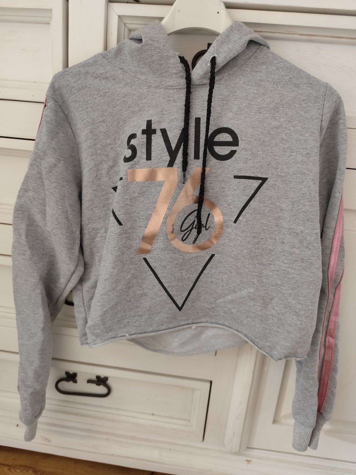Posúvam mikinu po dcérke veľkosť uvedená L ale zodpovedá xs až skôr s treba sa radšej riadiť rozmermy voľnejší strih,nosená minimálne bezchybný stav 50% bavlna 50%polyester