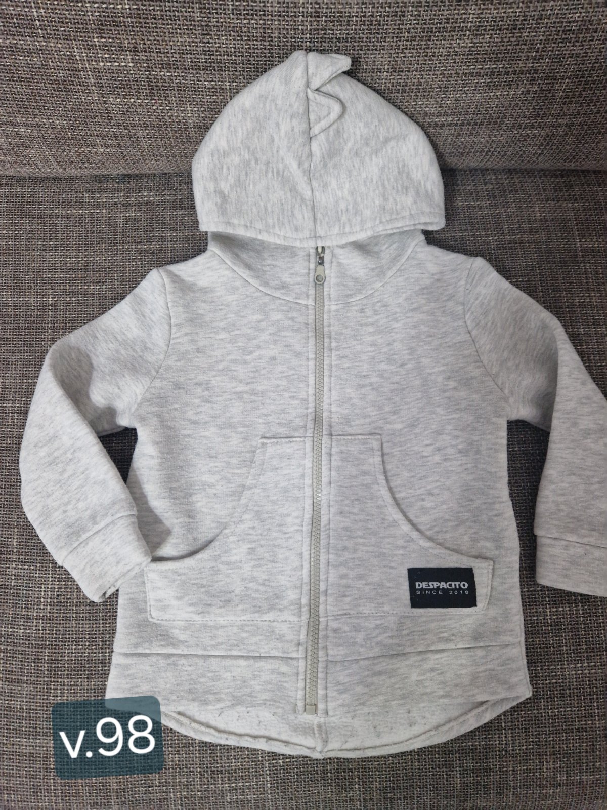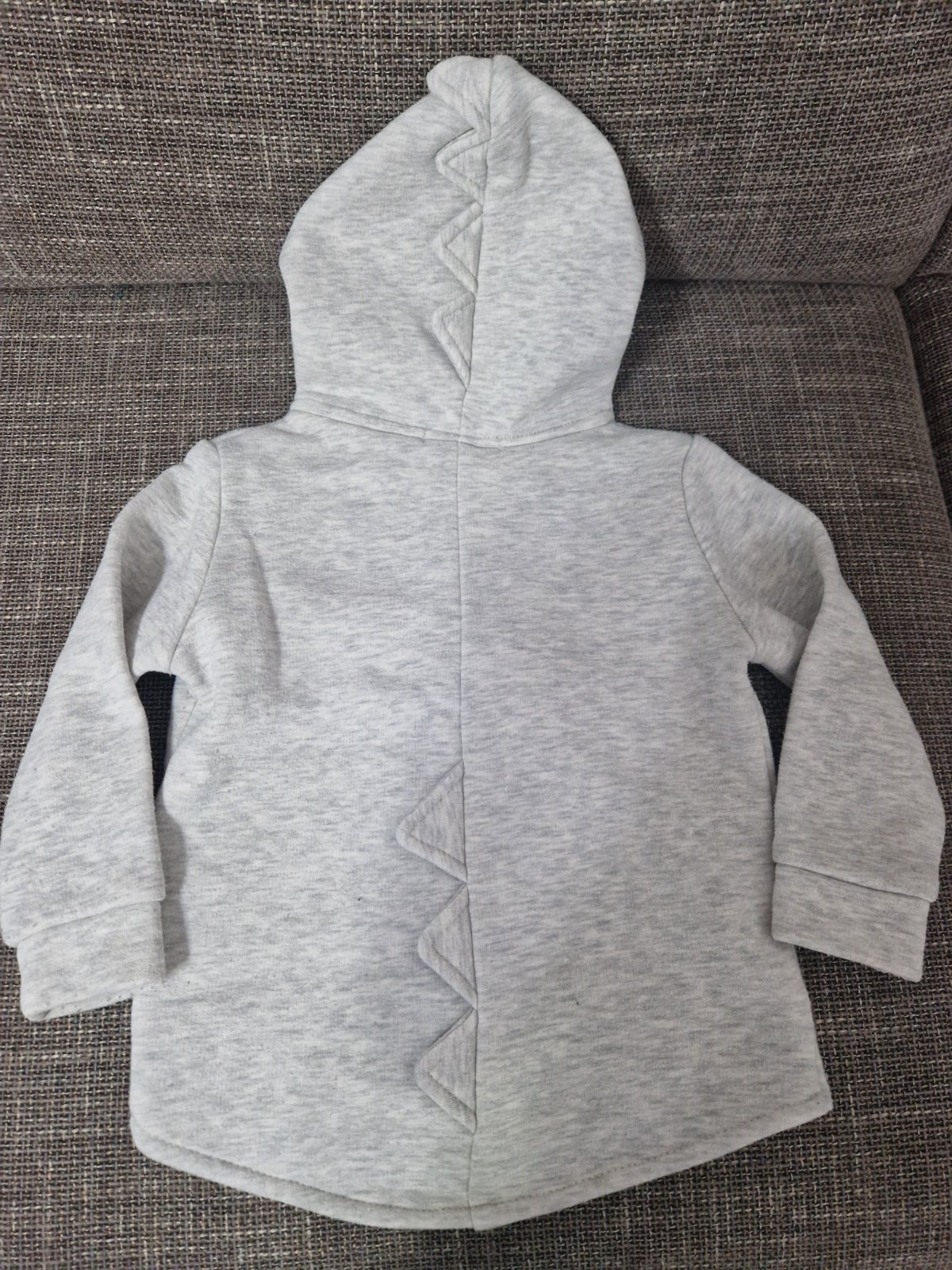 Použivana ale bez poskodenia. Ma len zmolky ktore sa daju odstranit. Na chrbatiku a kapucke je dinosaurí vzor.