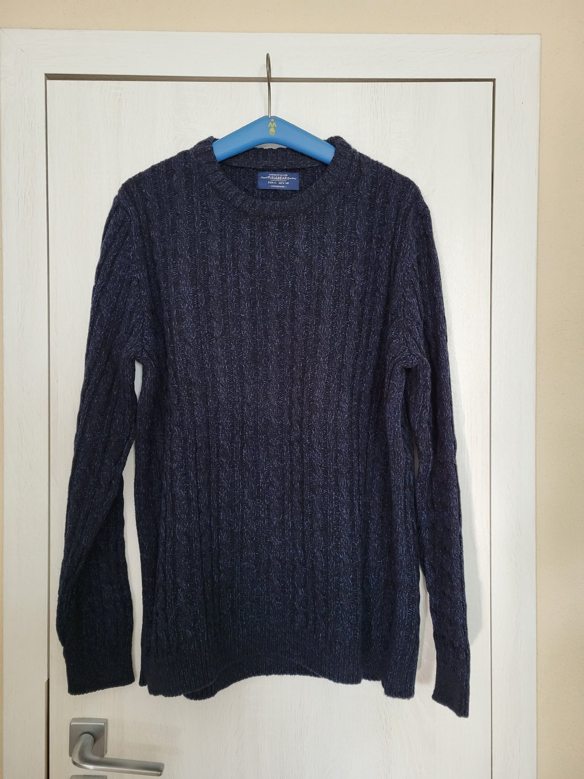 krasny tmavomodry polover velkost L . Material 100 % acryl prijemny na telo. manzel dostal ako darcek ale zial je velky je neprany bez visacky kludne mozete darovat