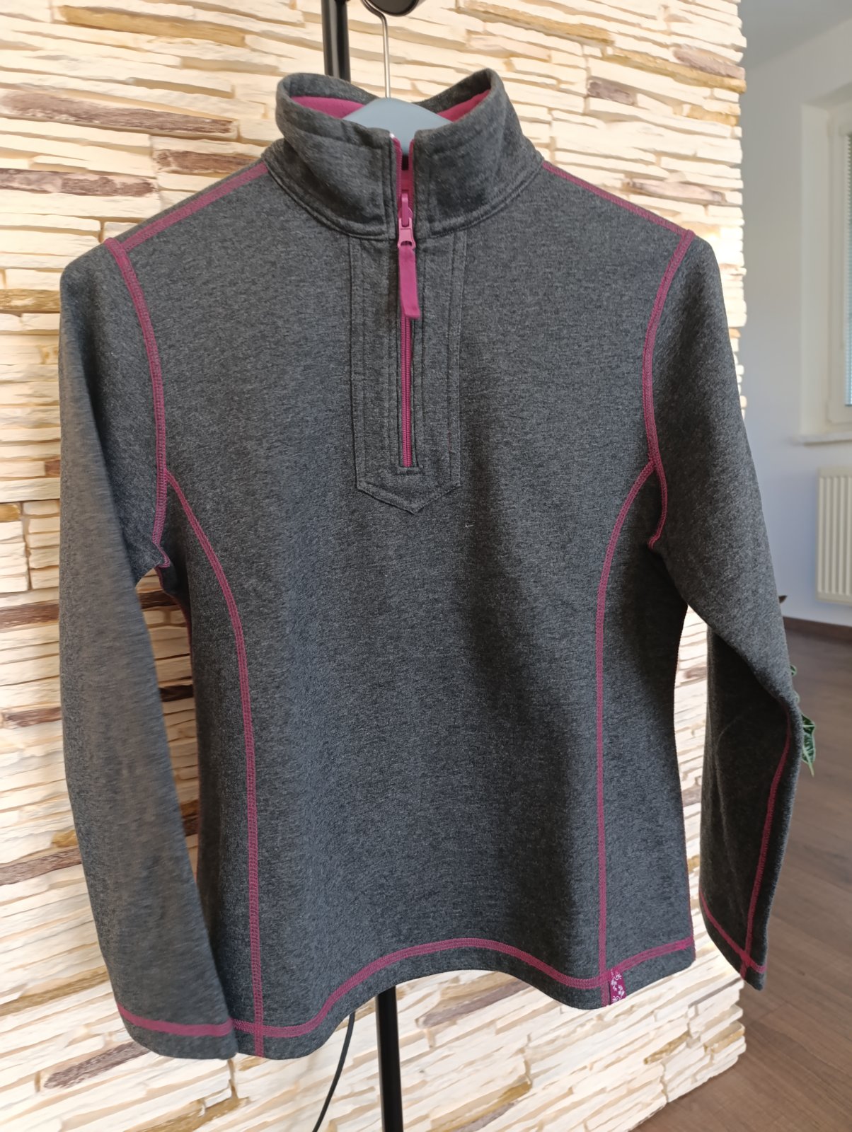 Teplá bavlnená mikina s kozusinou, bezchybná. Veľkosť S ale zdá sa mi menšia. Tak XS. Dĺžka vzadu 59 cm, šírka 45 cm, rukáv od goliera 69 cm.