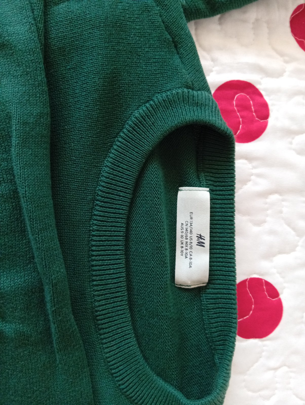 Predam malo noseny vianočný sveter znacky H&M v top stave. Velkost uvedena 134/140. Celkova dlzka je 53 cm, sirka 37 cm. Dlzka rukava od krku je 60 cm, od ramena 51 cm.