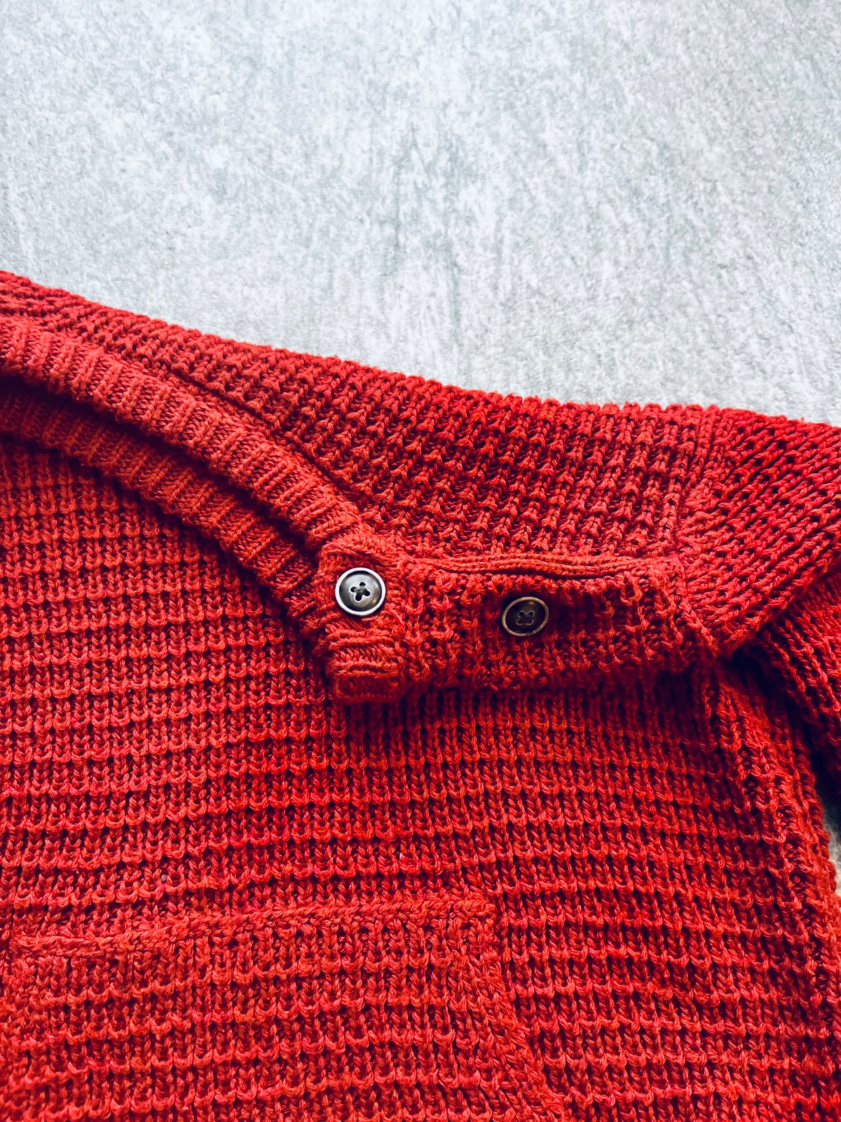Predam tehlovo cerveny pulovrik. Pre lepsie obliekanie so zapinanim na remene na dva gombiky. Bez poskodeni bez zmolku.