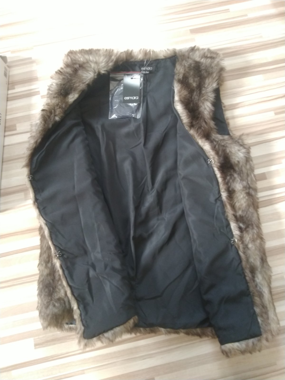 Predam novu chlpatu vesticku znacky esmara, s visackou, velkost S vhodna na velkost 36-40, dlzka je 65 cm, sirka cez prsia 45 cm.