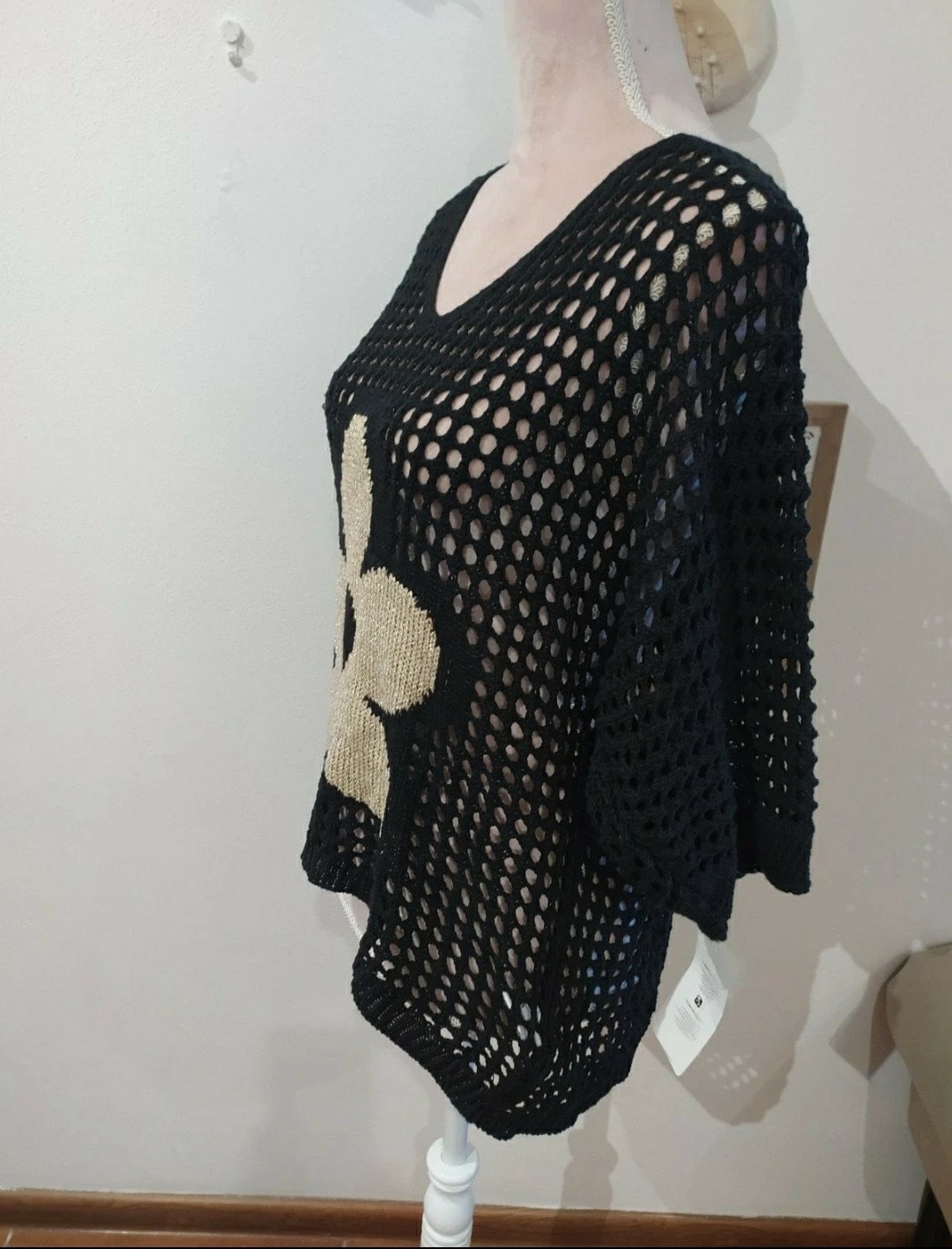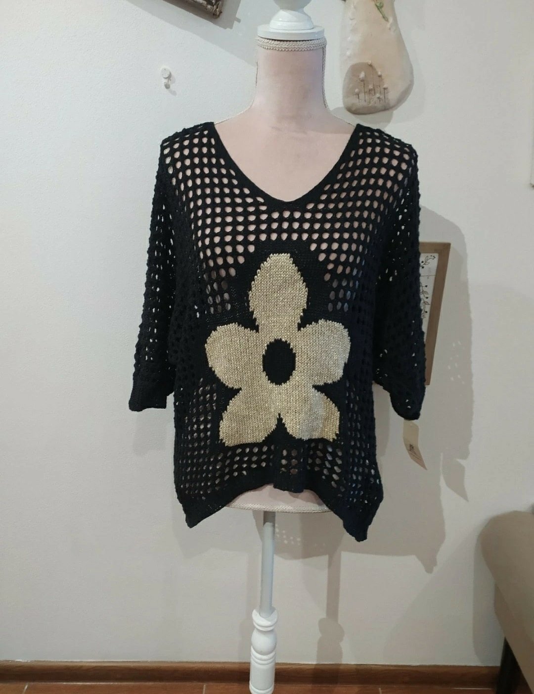 Krásny svetrík,s kvetom,veľ Uni vhodné pre veľ S-L,predný diel o trochu kratší,voľný strih