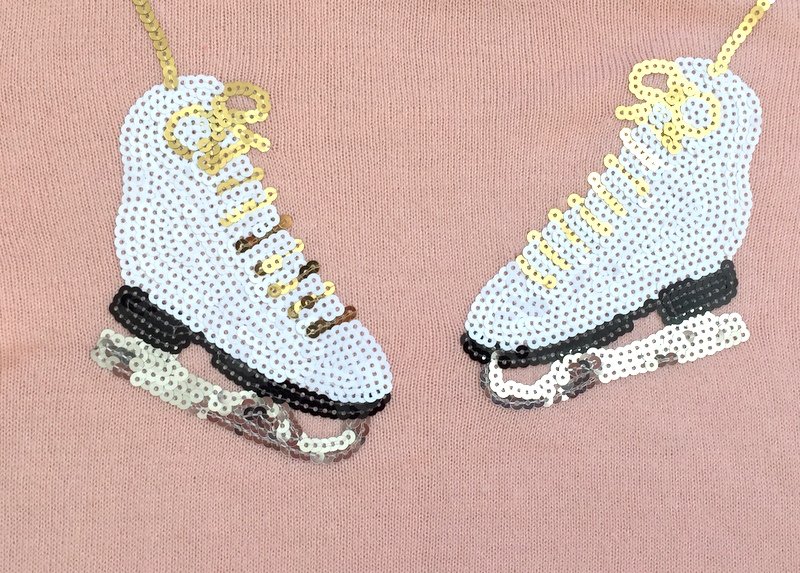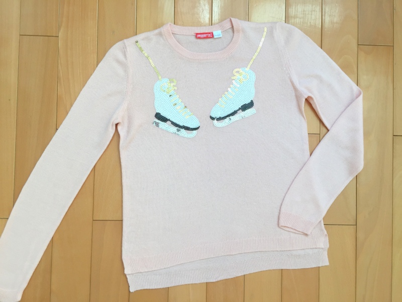 Dlžka vpredu 51cm, dlžka vzadu 53cm, šírka 41cm, dlzka rukava od krku 63cm. Má peknú ligotavú aplikáciu korčúl.