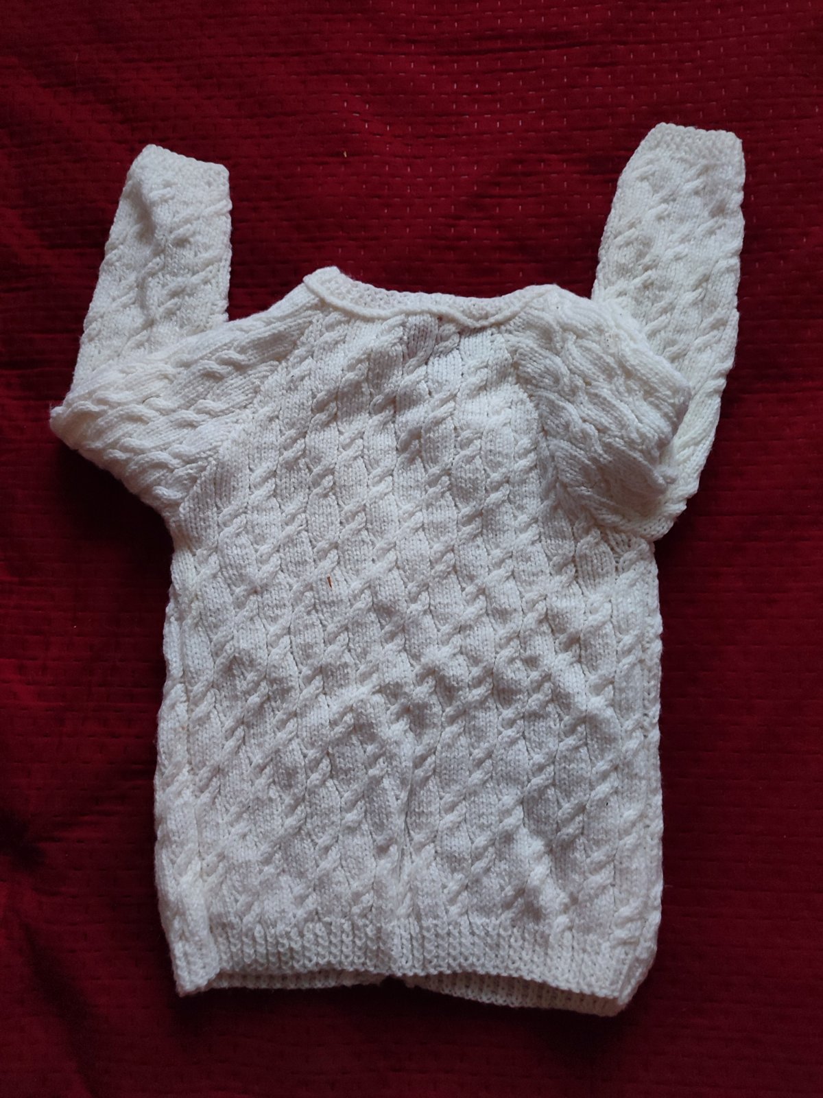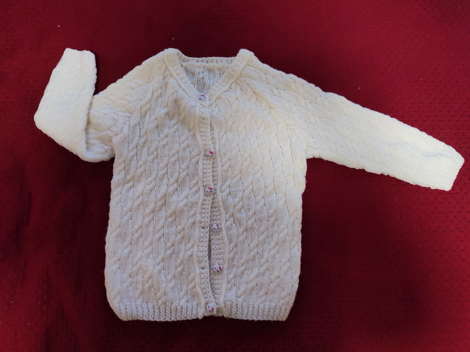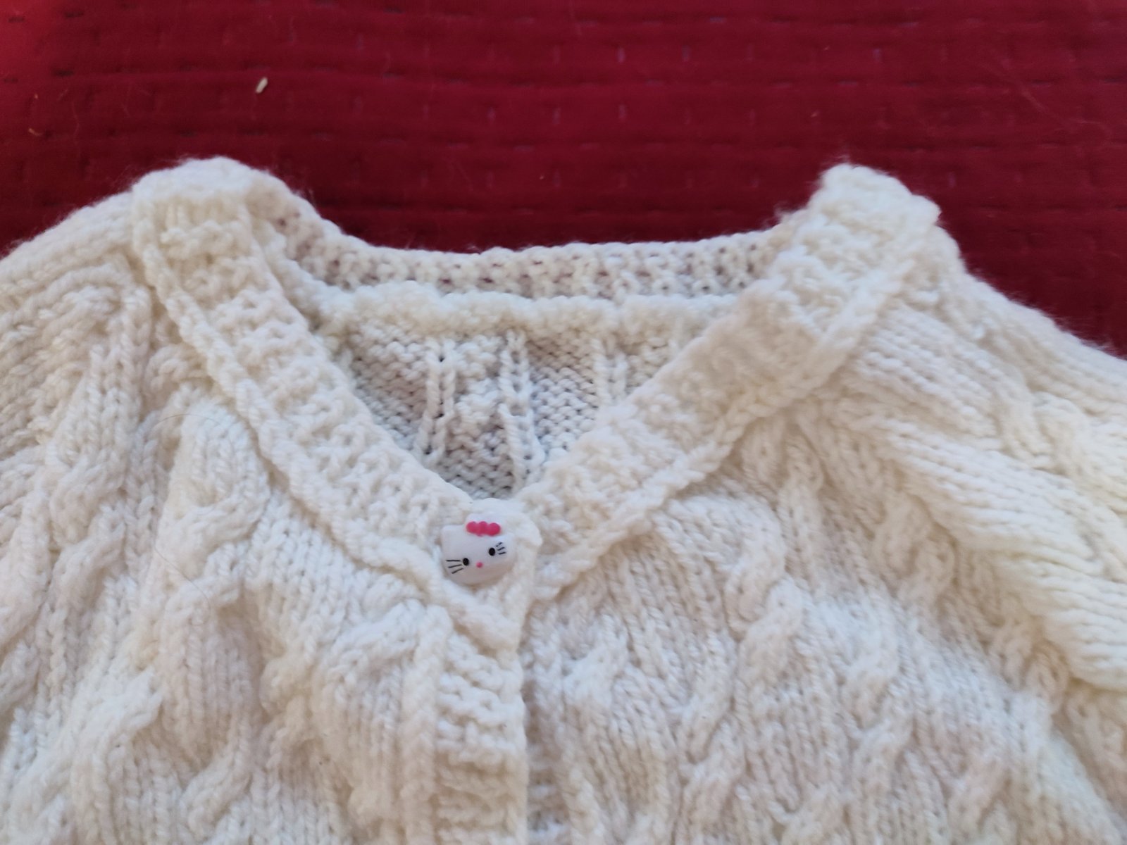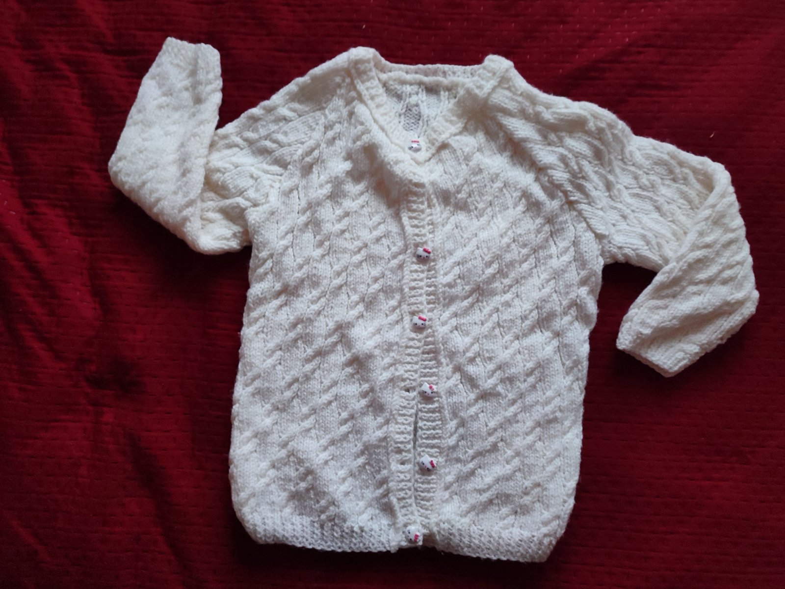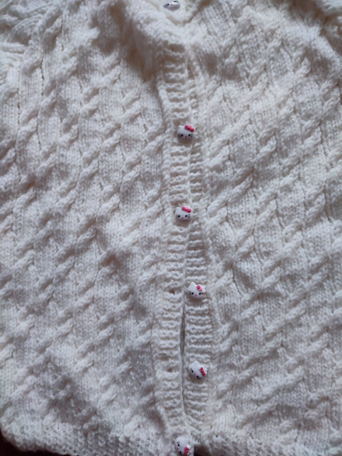 biely ručne štrikovaný svetrík s gombikmi hello kitty