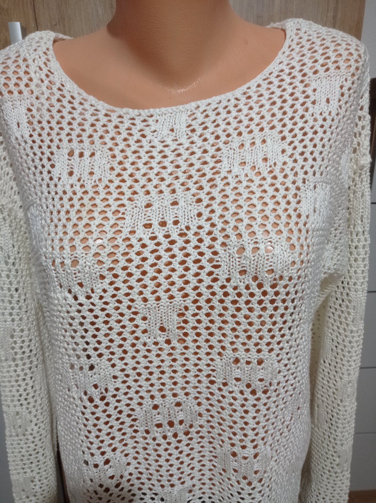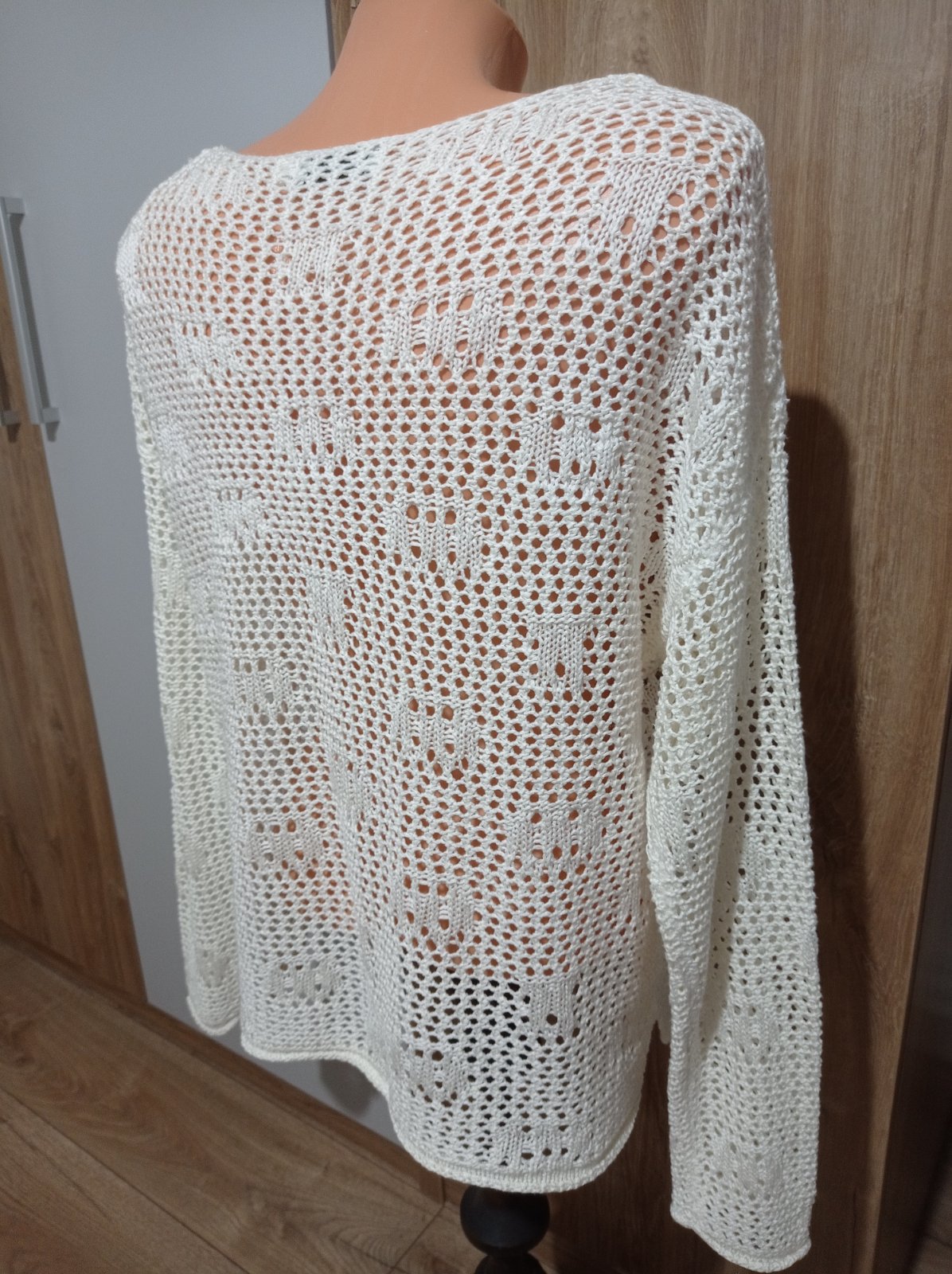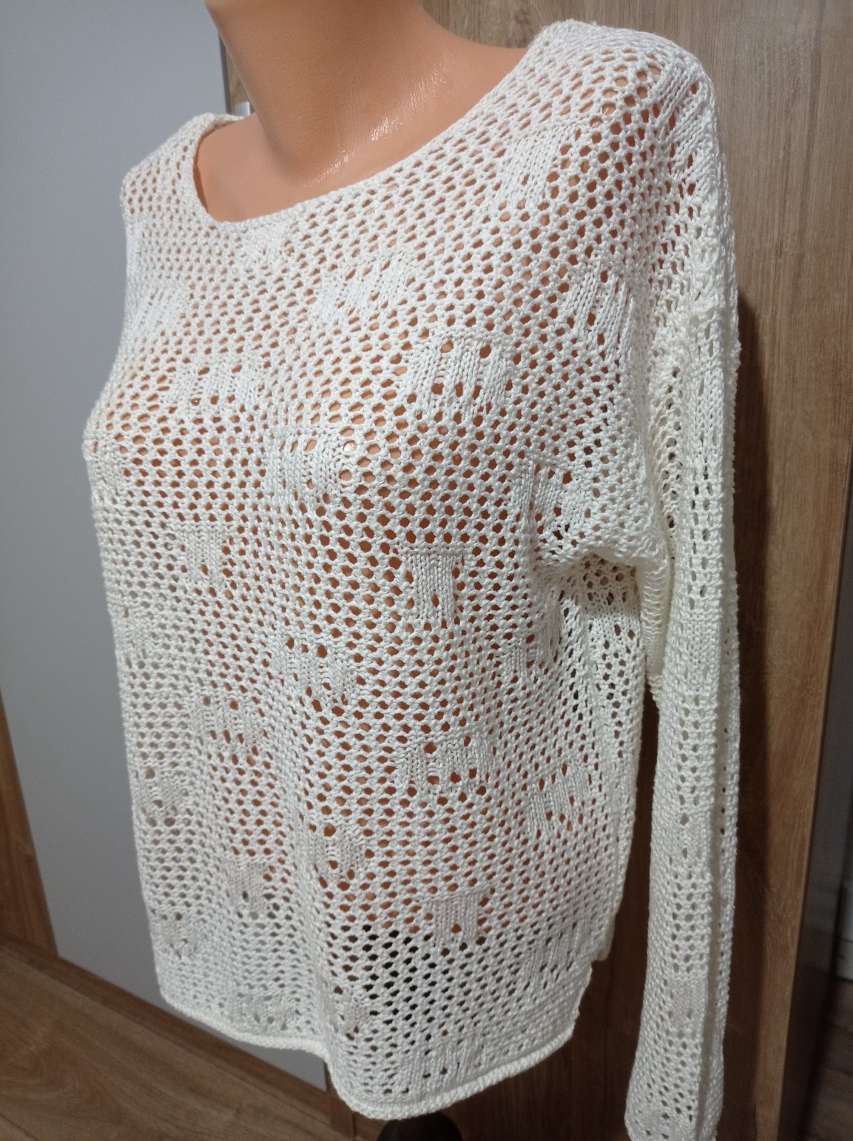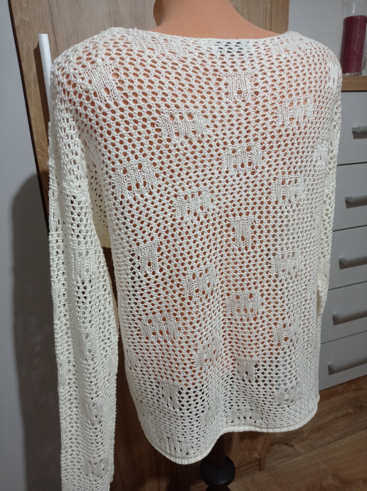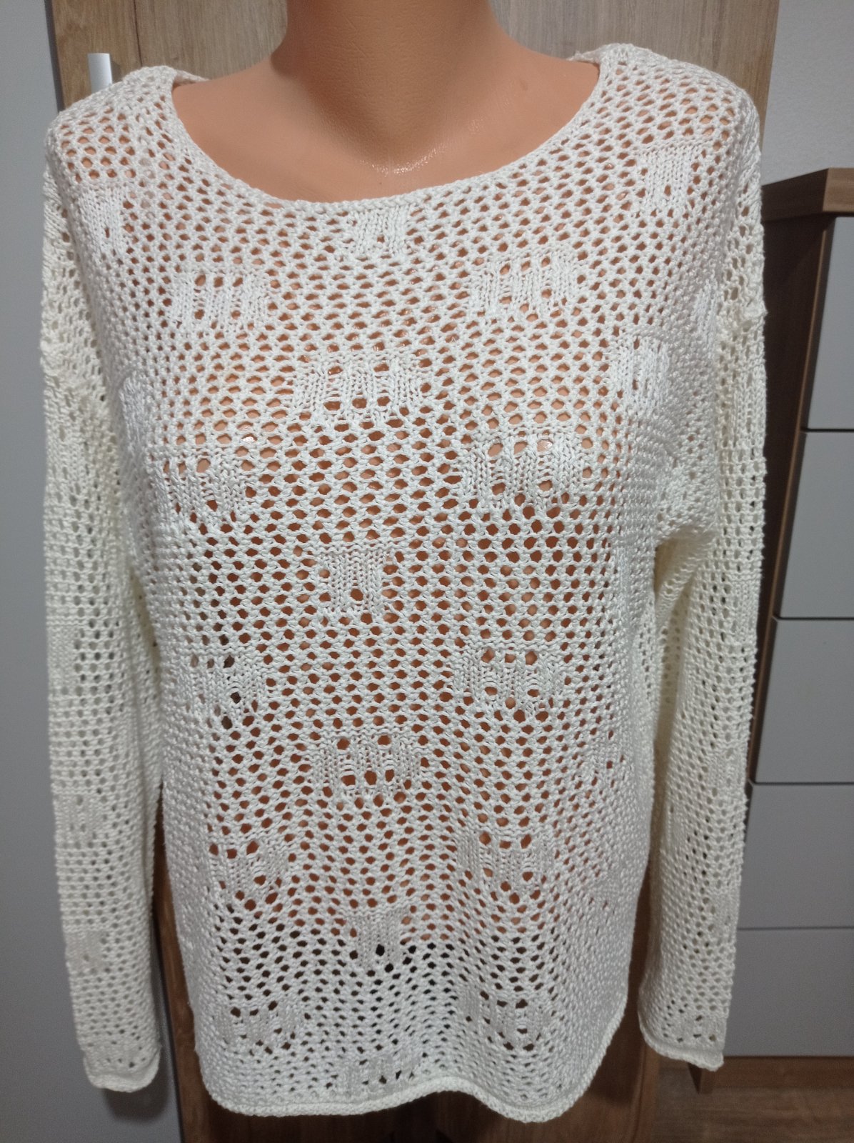 Pulóver je vo výbornom stave, z príjemného materiálu, na bokoch má krátke rázporky. Má krásny vzor. Veľkosť M, šírka pod pazuchami 51 cm x 2, prispôsobí sa, dĺžka 58 cm x 2.