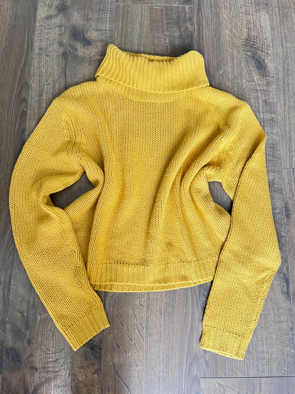 Štýlový dámsky pletený sveter v krásnej horčicovo-žltej farbe v peknom noseno. Stave. Má vyšší rolák, ktorý príjemne zahreje, a pohodlny strih. Mäkký a teplý úplet je ideálny na chladnejšie dni. Sveter sa ľahko kombinuje s džínsami, sukňou aj nohavicami s vysokým pásom.